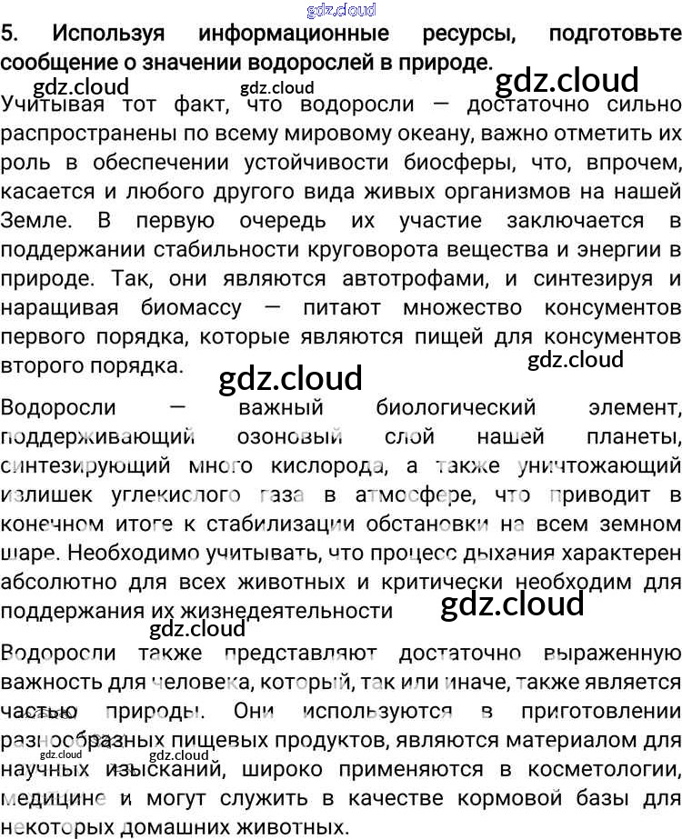 Ответ на задание 5 Учебник Биология за 6 (шестой) класс Пономарева, Корнилова, Кучменко Алгоритм успеха 2018