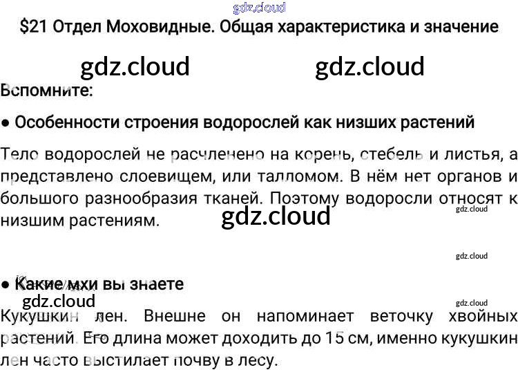 Ответы к §21 по Биологии 6 класс Учебник Пономарева Алгоритм успеха Вентана-граф