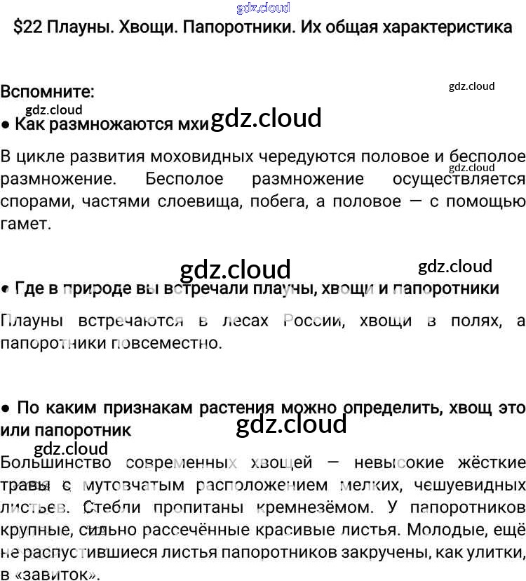 Ответы к §22 по Биологии 6 класс Учебник Пономарева Алгоритм успеха Вентана-граф