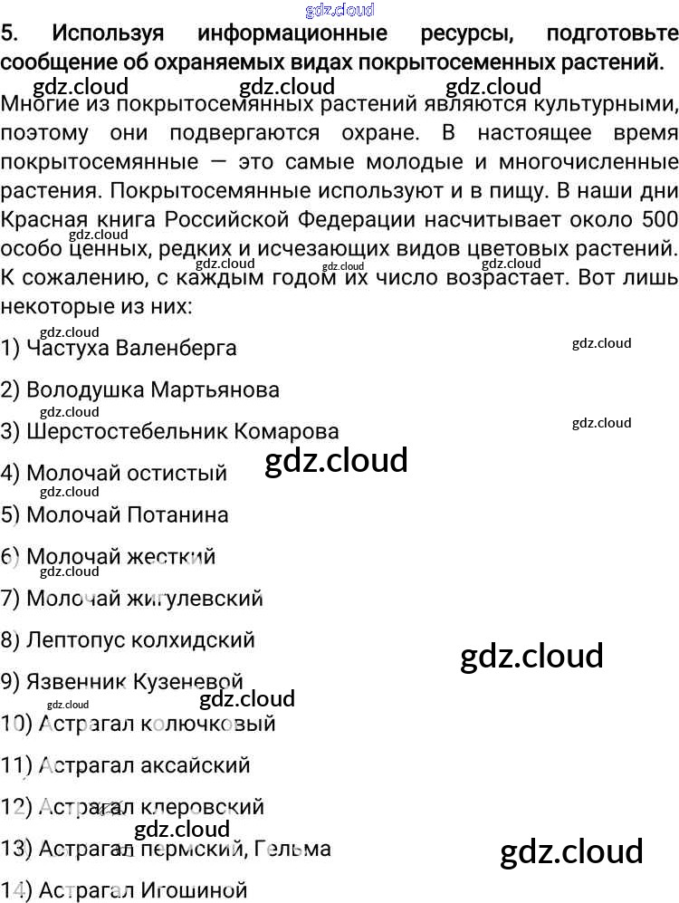 Ответ на задание 5 Учебник Биология за 6 (шестой) класс Пономарева, Корнилова, Кучменко Алгоритм успеха 2018