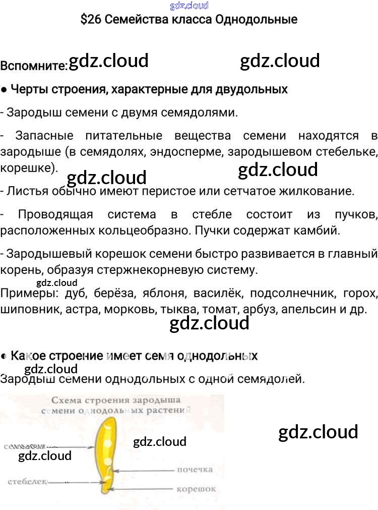 Ответы к §26 по Биологии 6 класс Учебник Пономарева Алгоритм успеха Вентана-граф