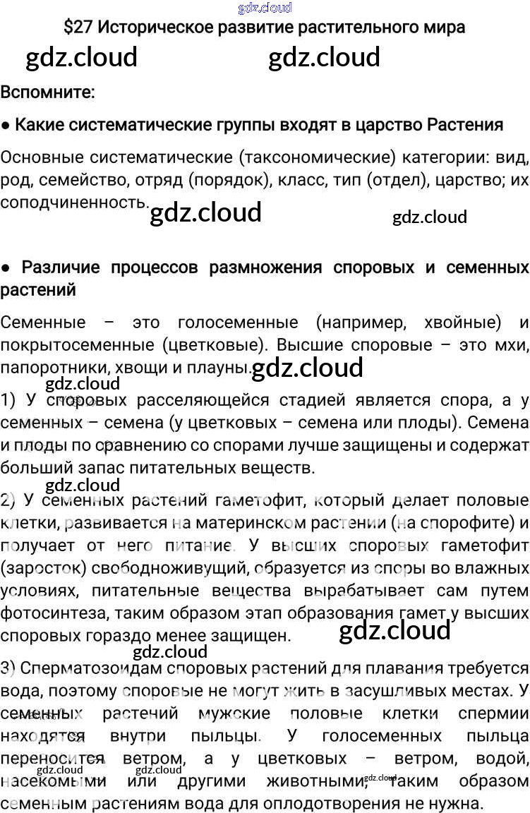 Ответы к §27 по Биологии 6 класс Учебник Пономарева Алгоритм успеха Вентана-граф