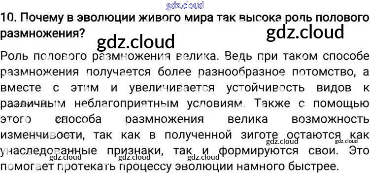 Ответ на задание 10 Учебник Биология за 6 (шестой) класс Пономарева, Корнилова, Кучменко Алгоритм успеха 2018