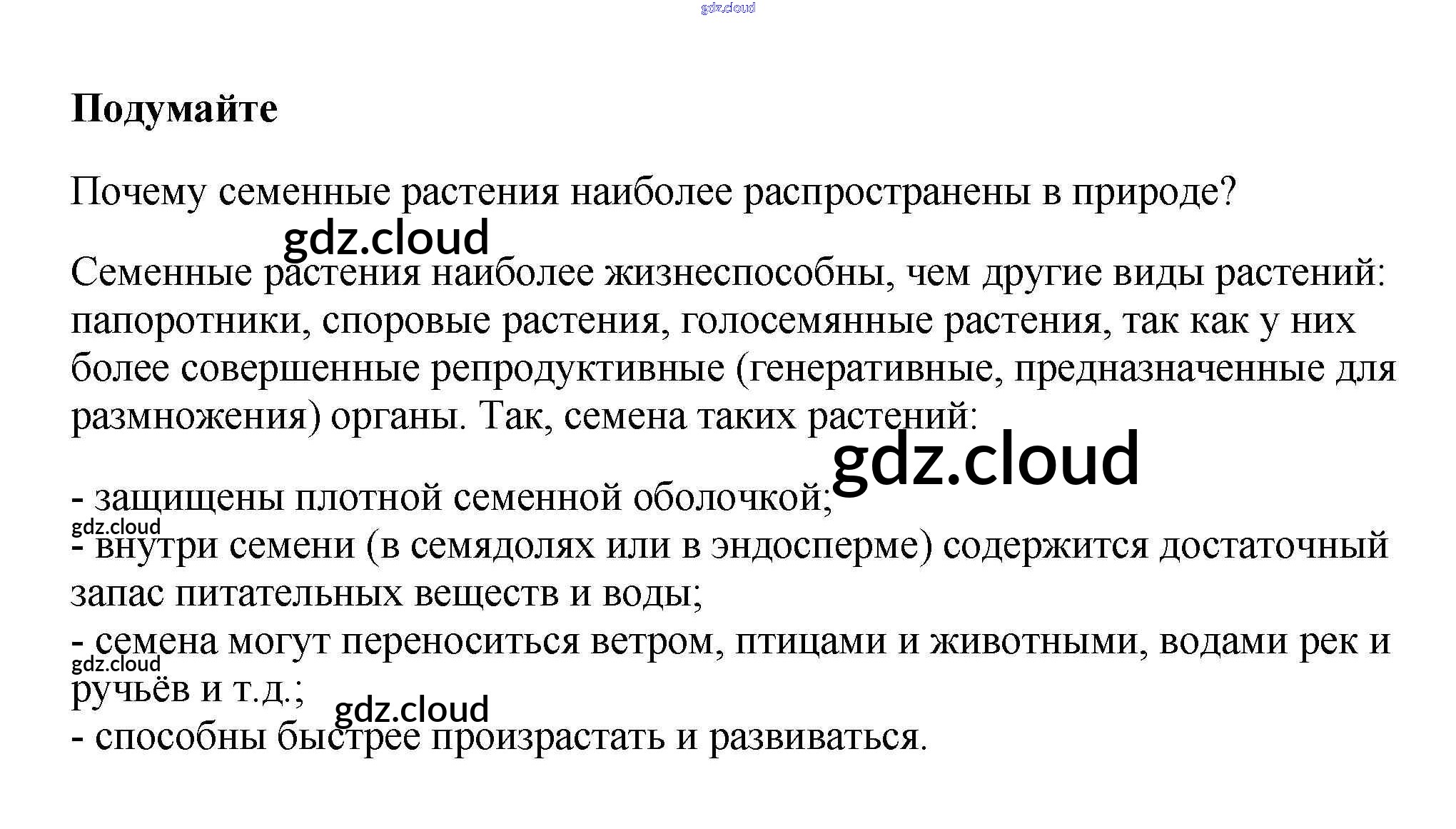Подумайте Ответы к §1. Строение семян по Биологии 6 класс Учебник Пасечник Вертикаль Дрофа