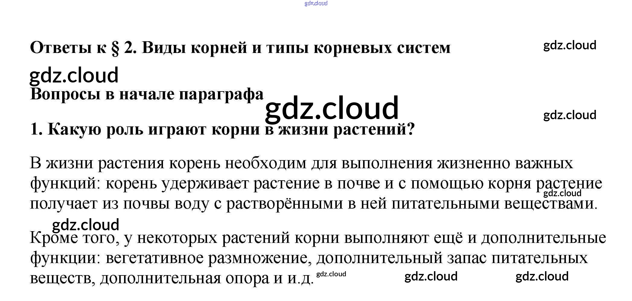 Вопросы в начале параграфа Ответы к §2. Виды корней и типы корневых систем по Биологии 6 класс Учебник Пасечник Вертикаль Дрофа