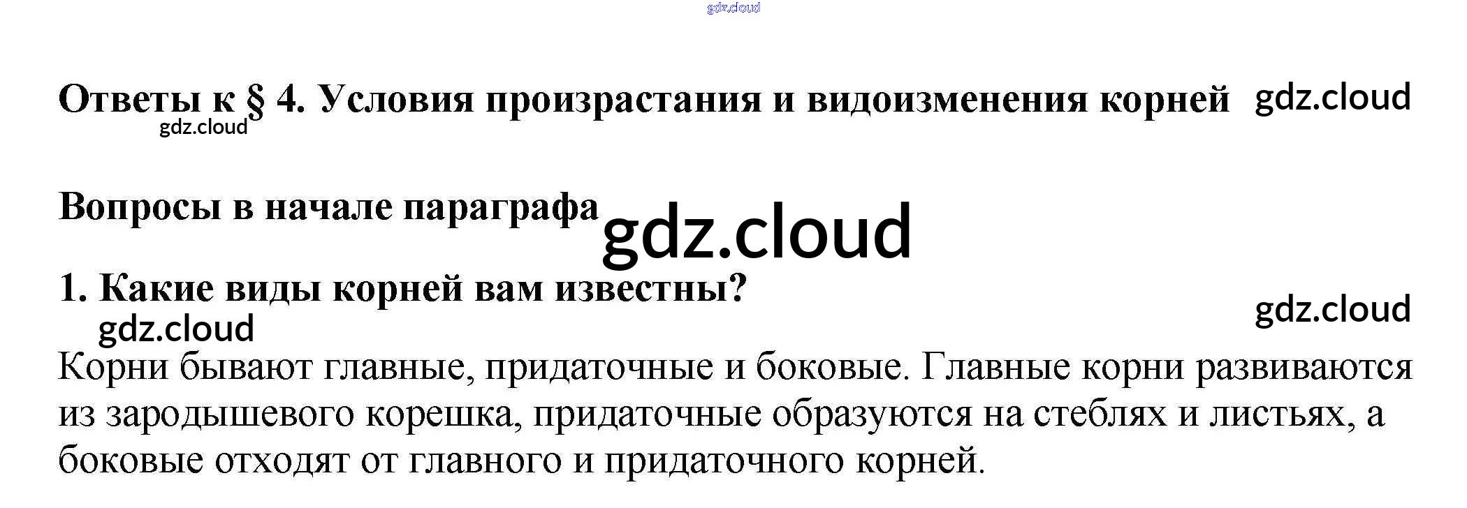 Вопросы в начале параграфа Ответы к §4. Условия произрастания и видоизменения корней по Биологии 6 класс Учебник Пасечник Вертикаль Дрофа