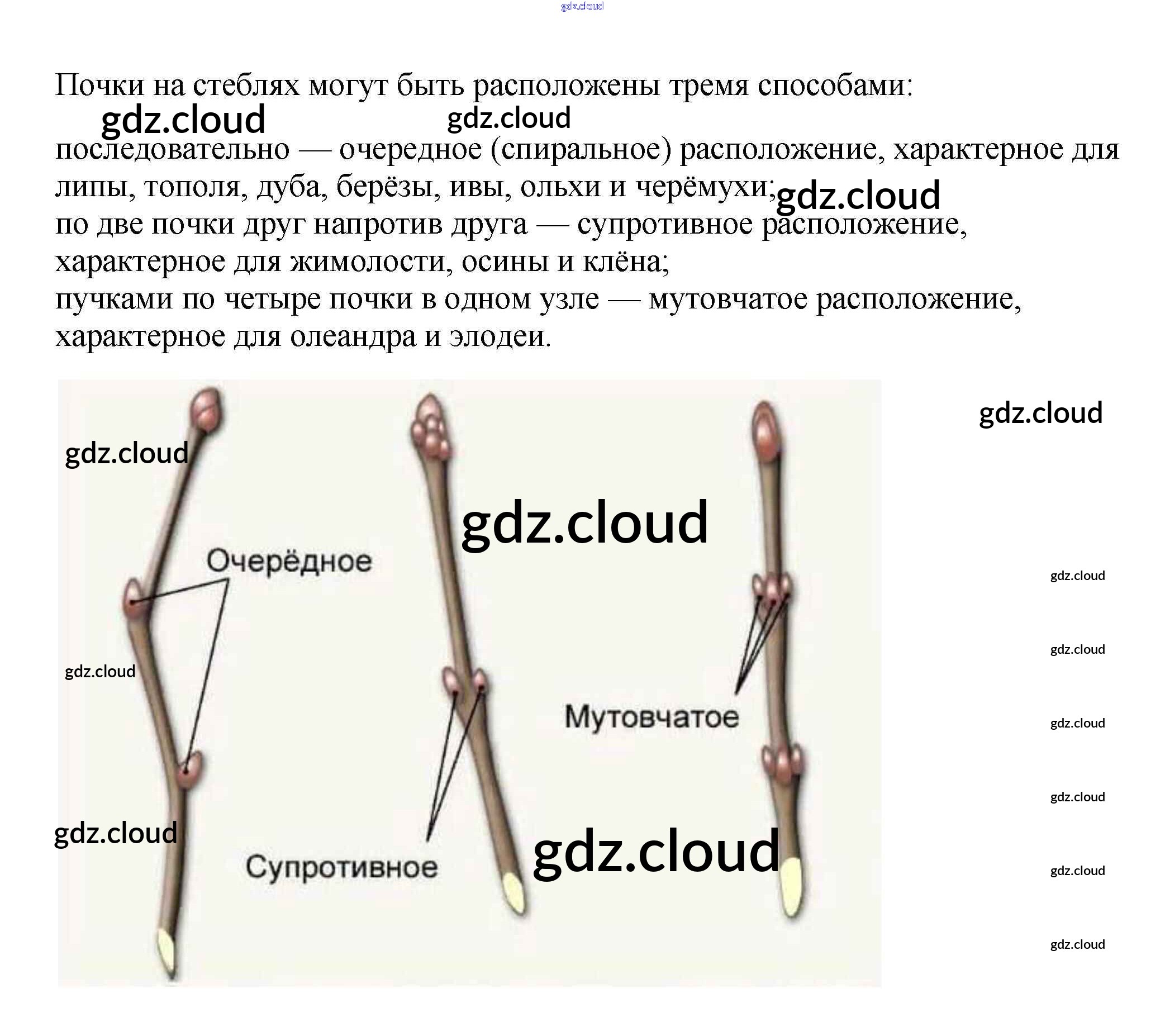 Строение почек. Расположение почек на стебле Ответы к §5. Побег и почки по Биологии 6 класс Учебник Пасечник Вертикаль Дрофа