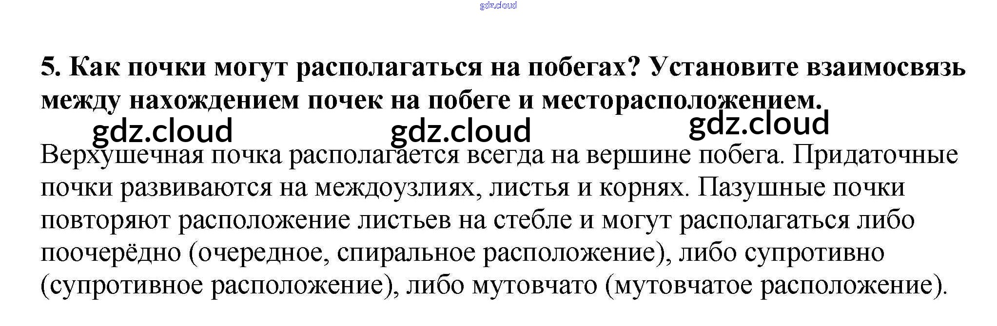 Вопросы в конце параграфа Ответы к §5. Побег и почки по Биологии 6 класс Учебник Пасечник Вертикаль Дрофа