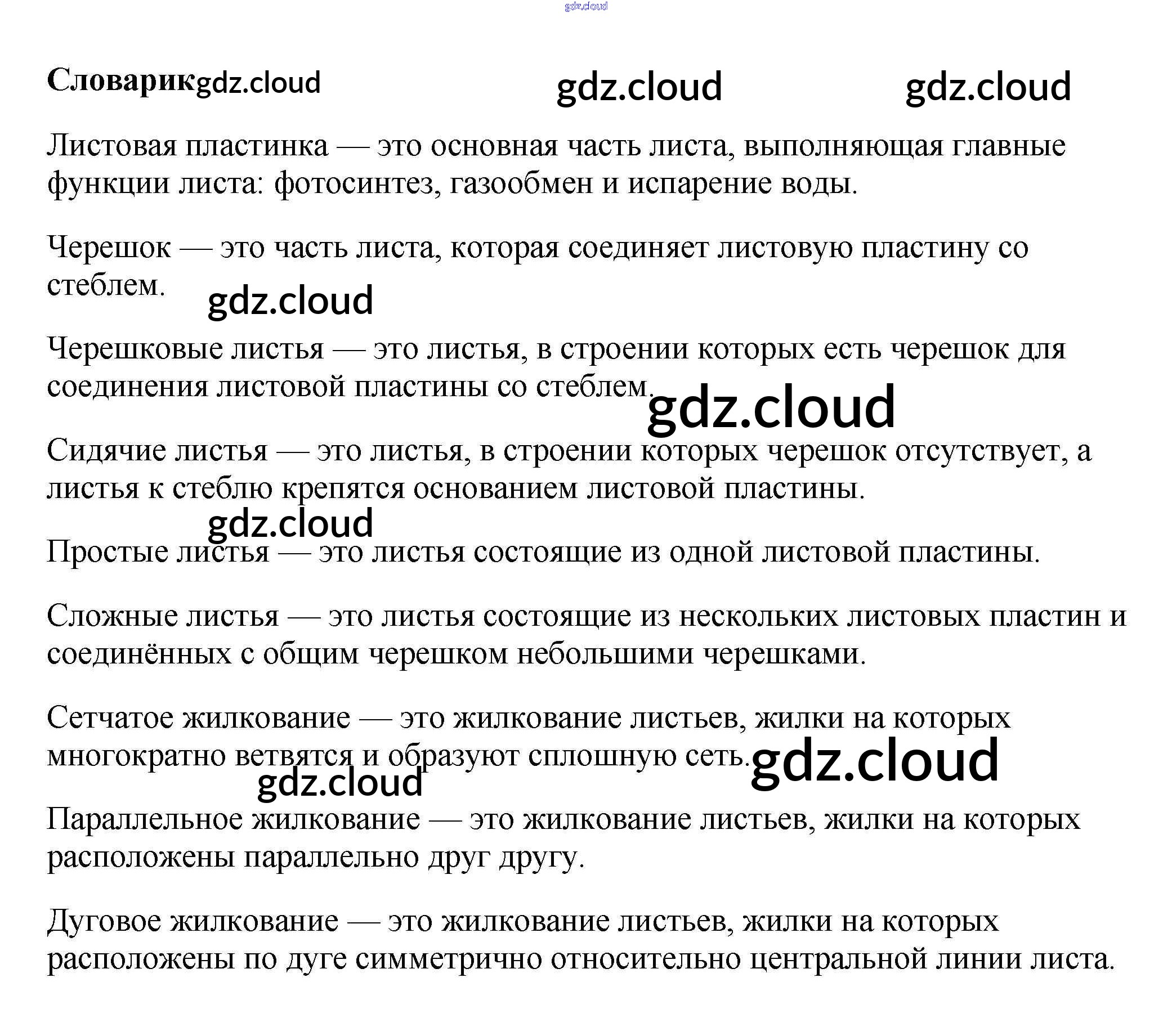 Словарик Ответы к §6. Внешнее строение листа по Биологии 6 класс Учебник Пасечник Вертикаль Дрофа