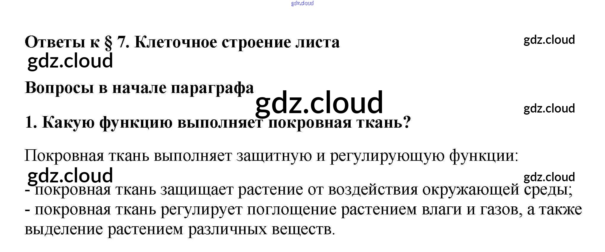 Вопросы в начале параграфа Ответы к §7. Клеточное строение листа по Биологии 6 класс Учебник Пасечник Вертикаль Дрофа