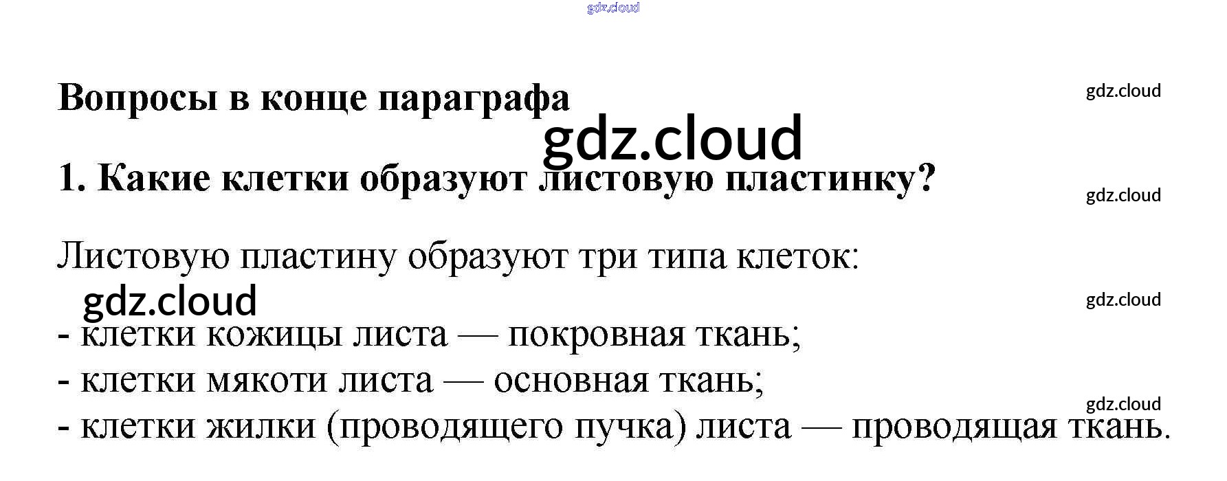 Вопросы в конце параграфа Ответы к §7. Клеточное строение листа по Биологии 6 класс Учебник Пасечник Вертикаль Дрофа