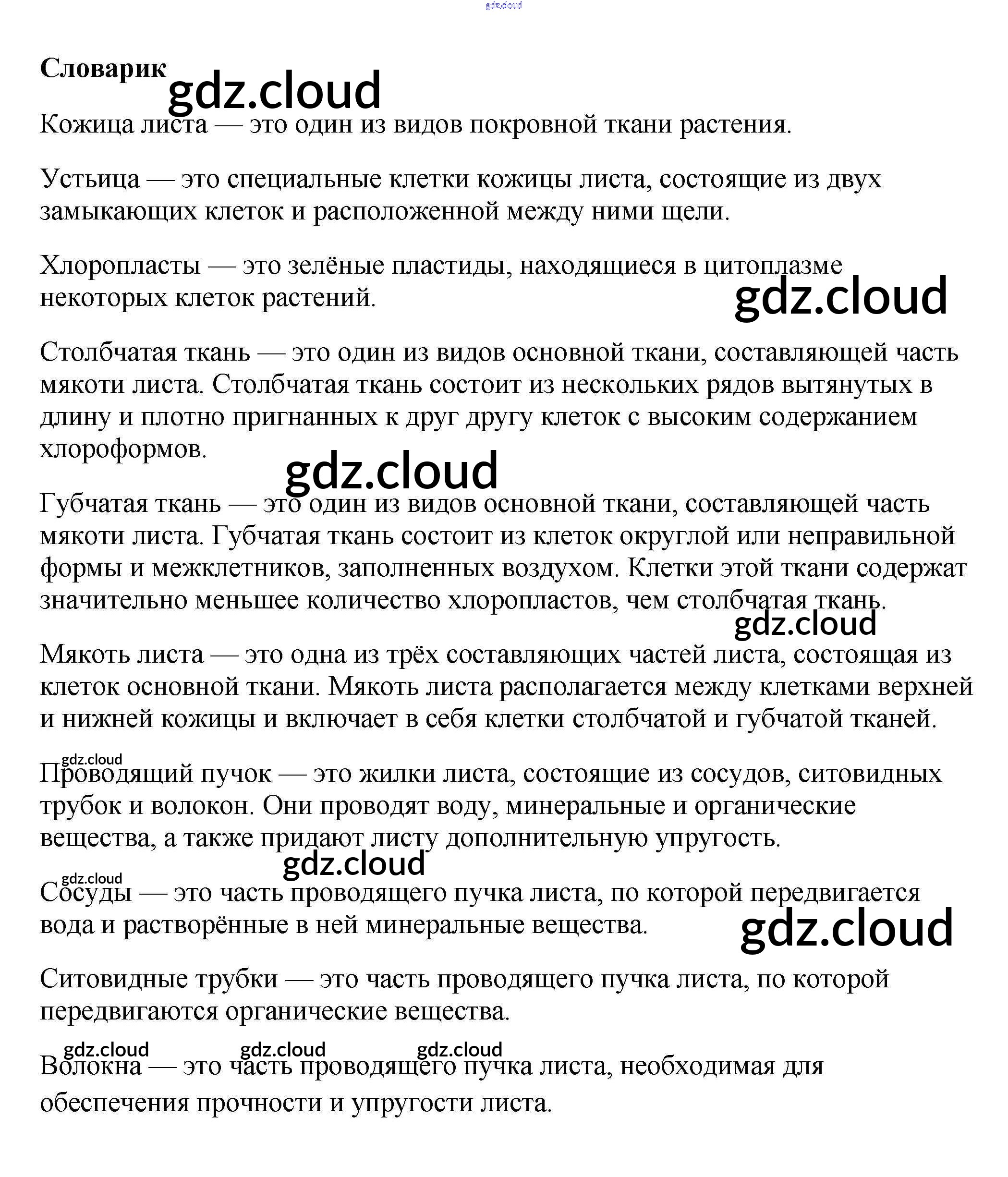 Словарик Ответы к §7. Клеточное строение листа по Биологии 6 класс Учебник Пасечник Вертикаль Дрофа