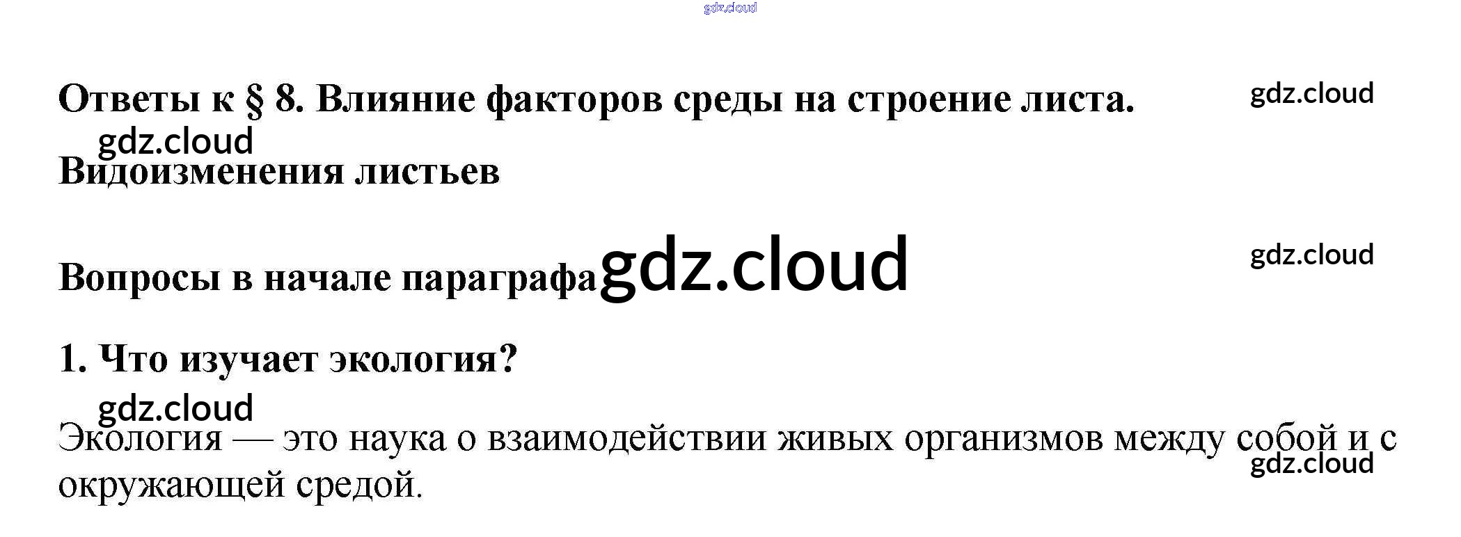 Вопросы в начале параграфа Ответы к §8. Влияние факторов среды на строение листа. Видоизменения листьев по Биологии 6 класс Учебник Пасечник Вертикаль Дрофа