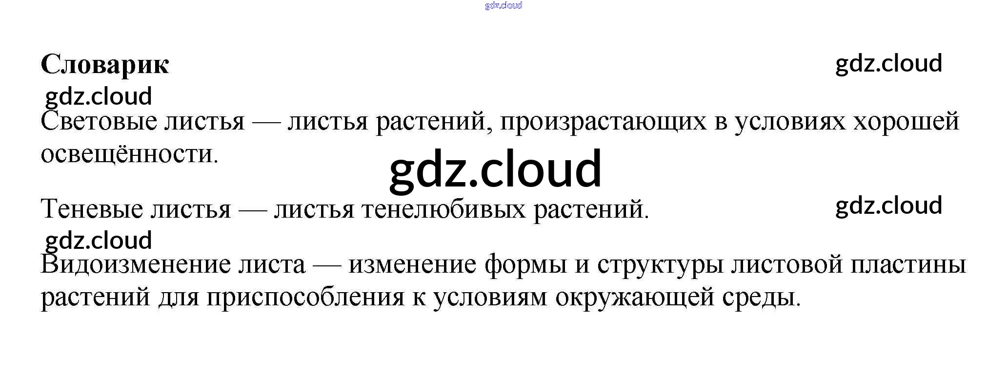 Словарик Ответы к §8. Влияние факторов среды на строение листа. Видоизменения листьев по Биологии 6 класс Учебник Пасечник Вертикаль Дрофа