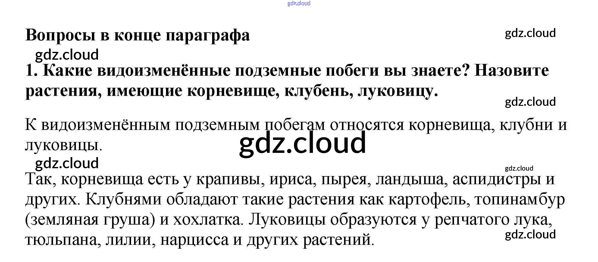 Вопросы в конце параграфа Ответы к §10. Видоизменения побегов по Биологии 6 класс Учебник Пасечник Вертикаль Дрофа