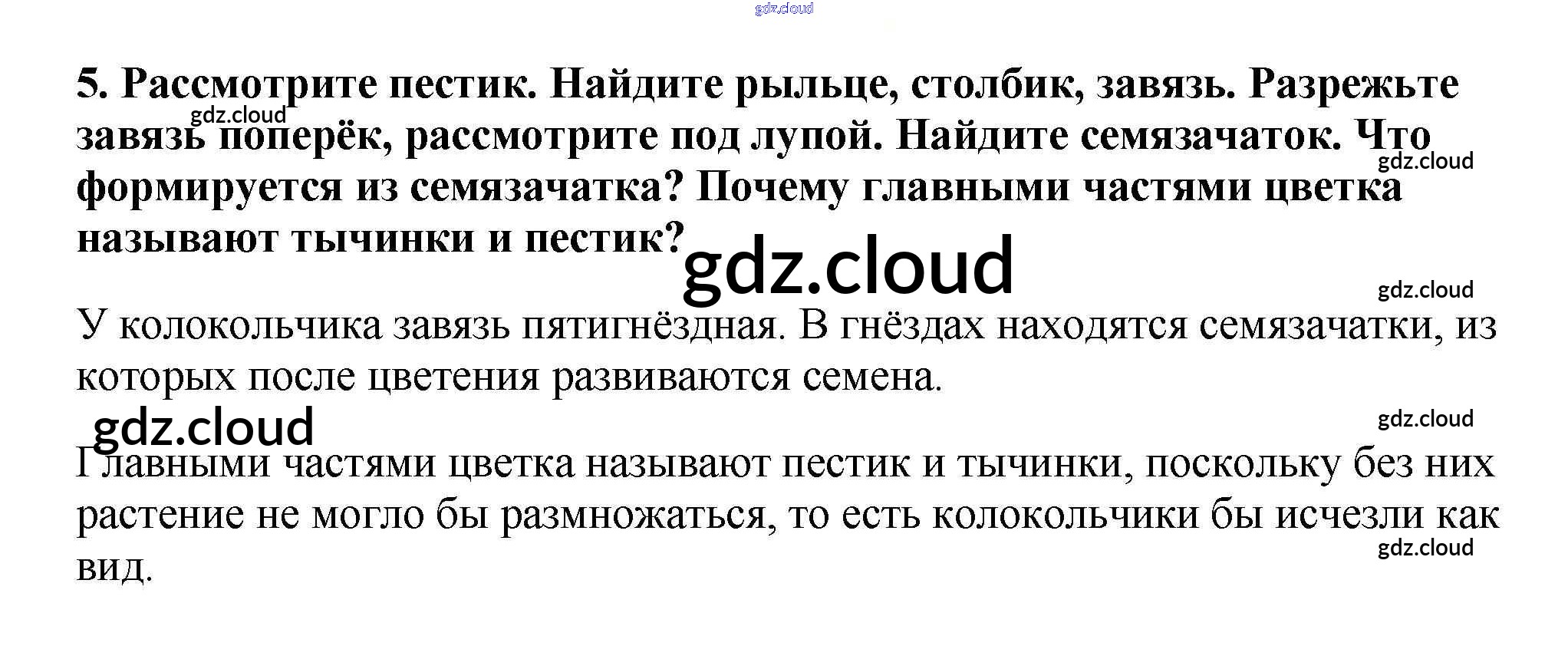 Ответ на задание 5 Учебник Биология за 6 (шестой) класс Пасечник Вертикаль 2014 ФГОС онлайн и без номера телефона.