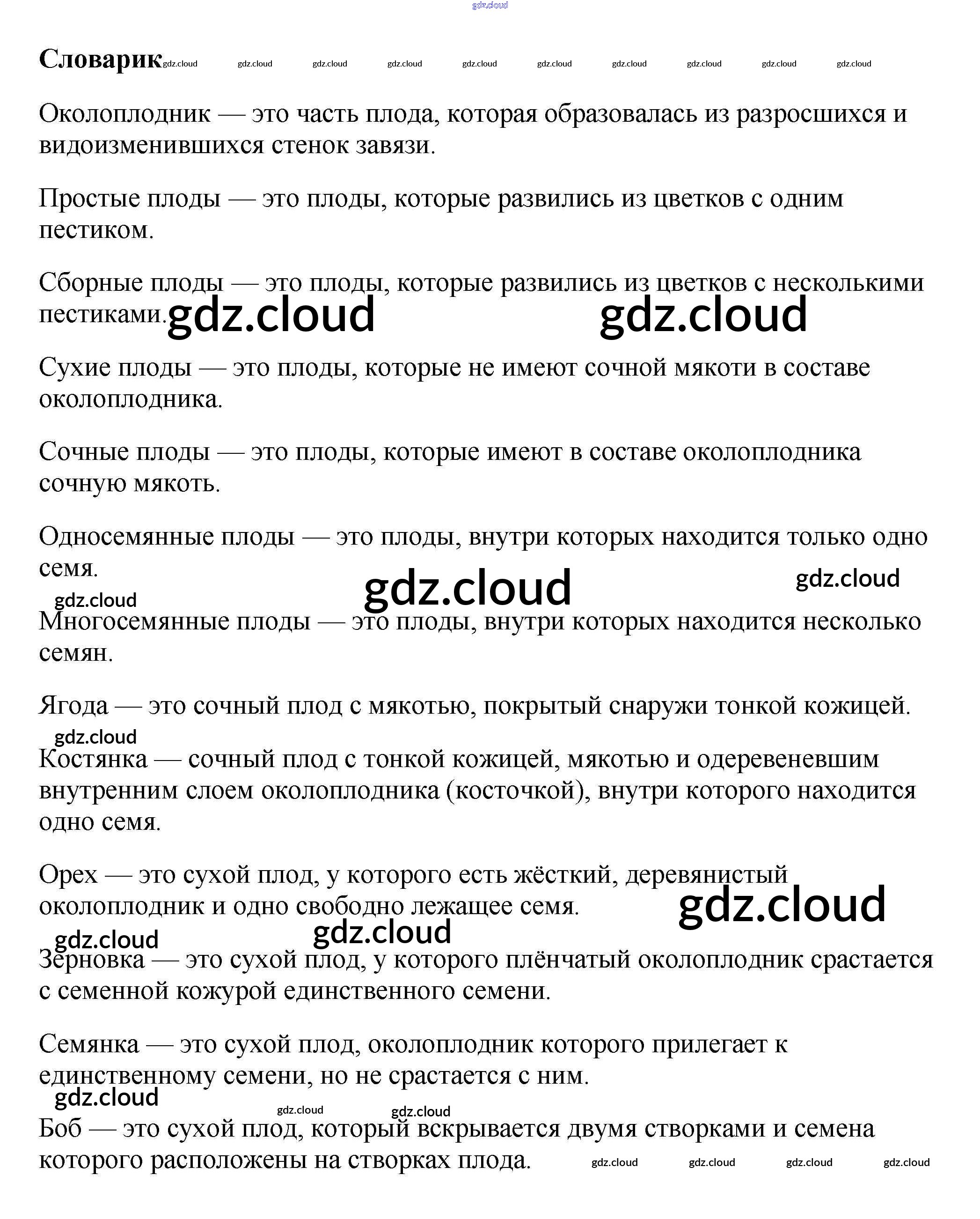 Словарик Ответы к §13. Плоды по Биологии 6 класс Учебник Пасечник Вертикаль Дрофа