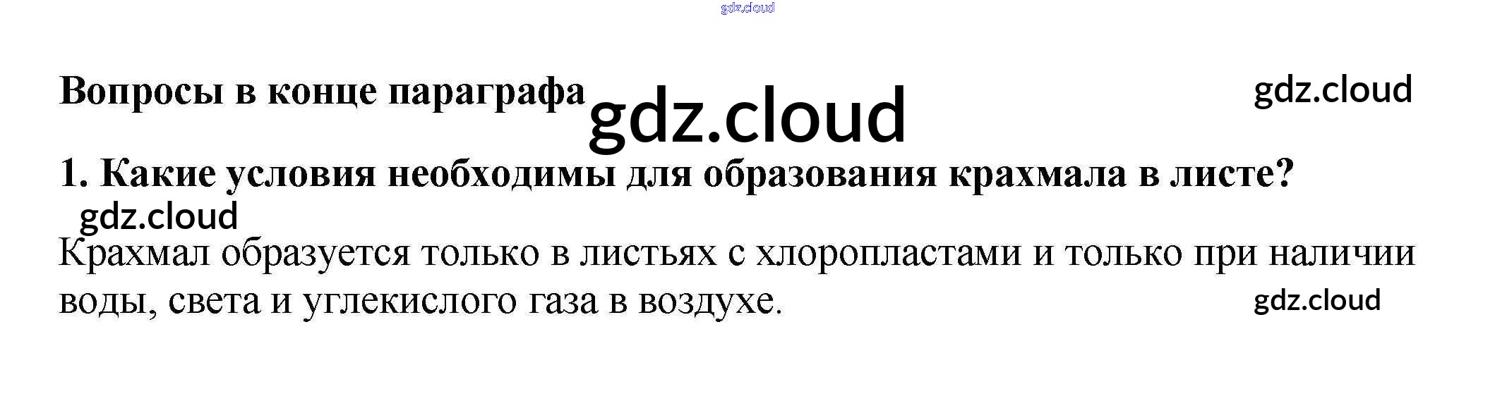 Вопросы в конце параграфа Ответы к §16. Фотосинтез по Биологии 6 класс Учебник Пасечник Вертикаль Дрофа