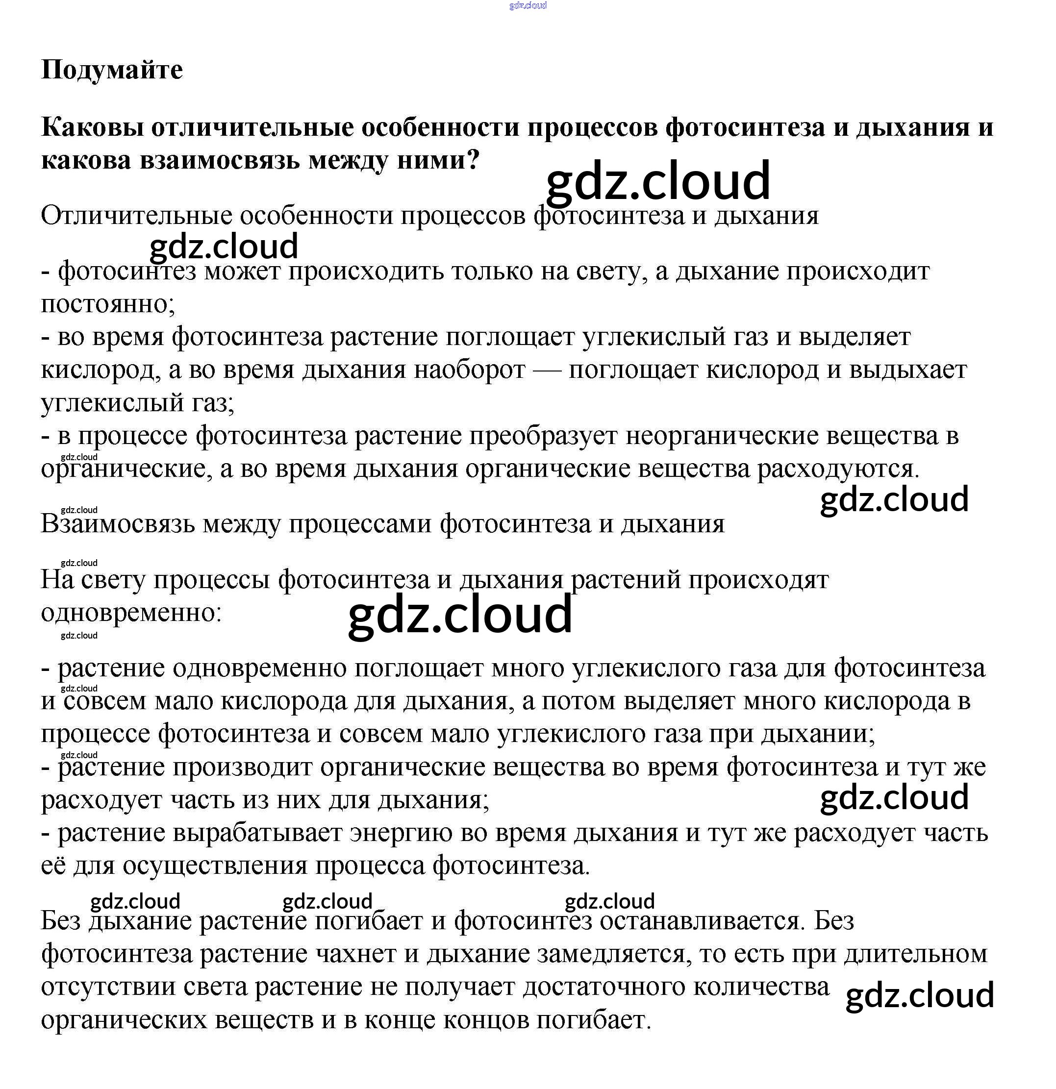Подумайте Ответы к §17. Дыхание растений по Биологии 6 класс Учебник Пасечник Вертикаль Дрофа