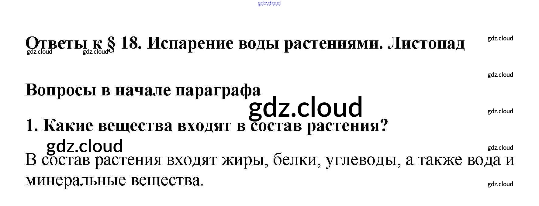Вопросы в начале параграфа Ответы к §18. Испарение воды растениями. Листопад по Биологии 6 класс Учебник Пасечник Вертикаль Дрофа