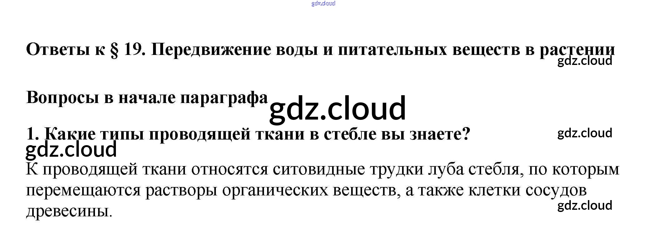 Вопросы в начале параграфа Ответы к §19. Передвижение воды и питательных веществ в растении по Биологии 6 класс Учебник Пасечник Вертикаль Дрофа