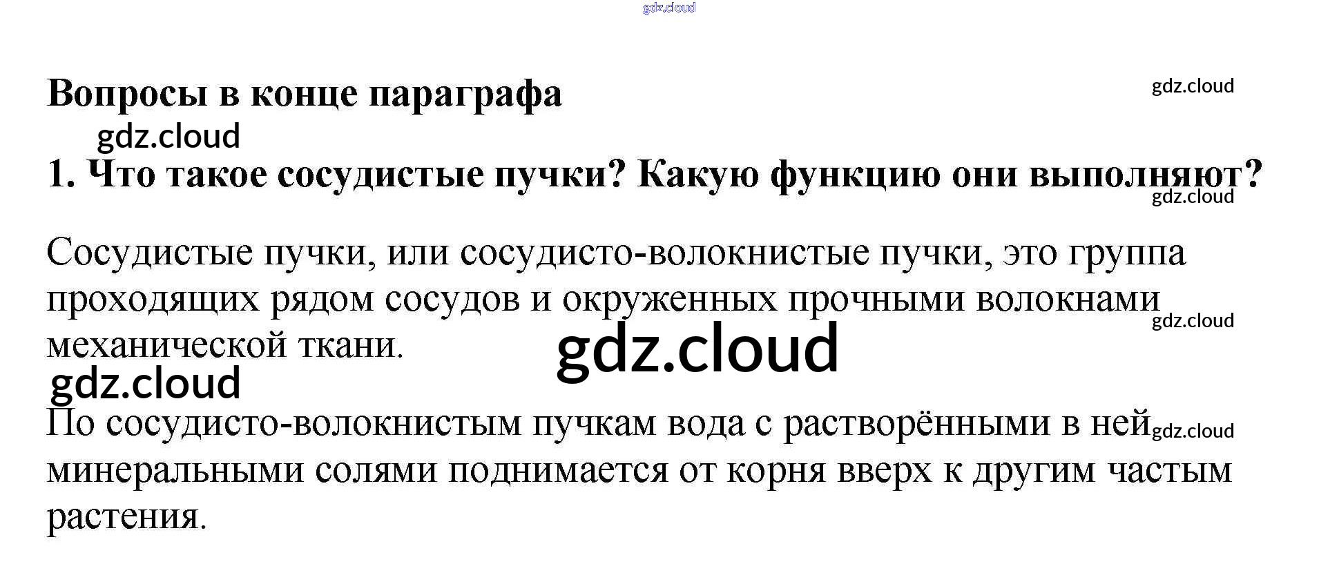 Вопросы в конце параграфа Ответы к §19. Передвижение воды и питательных веществ в растении по Биологии 6 класс Учебник Пасечник Вертикаль Дрофа