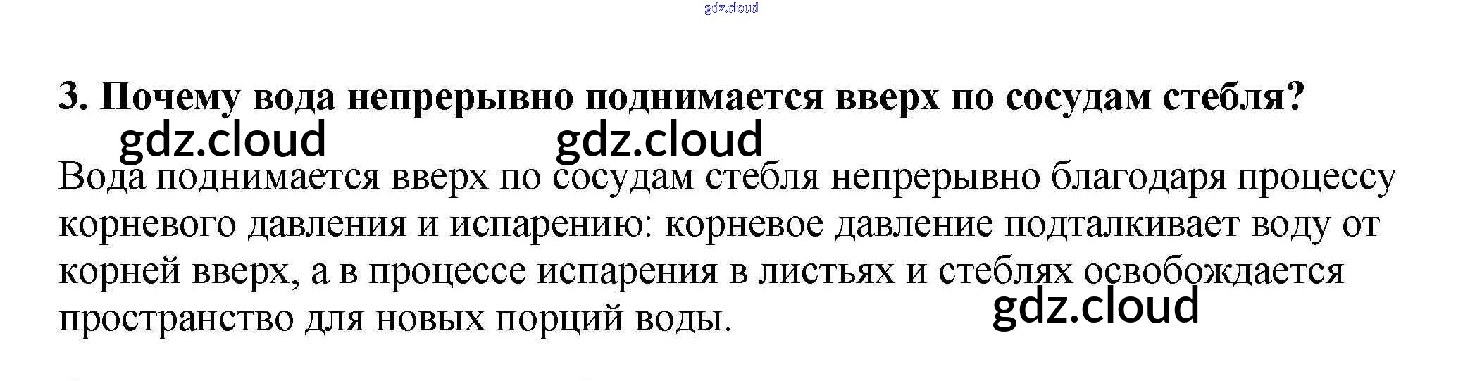 Вопросы в конце параграфа Ответы к §19. Передвижение воды и питательных веществ в растении по Биологии 6 класс Учебник Пасечник Вертикаль Дрофа