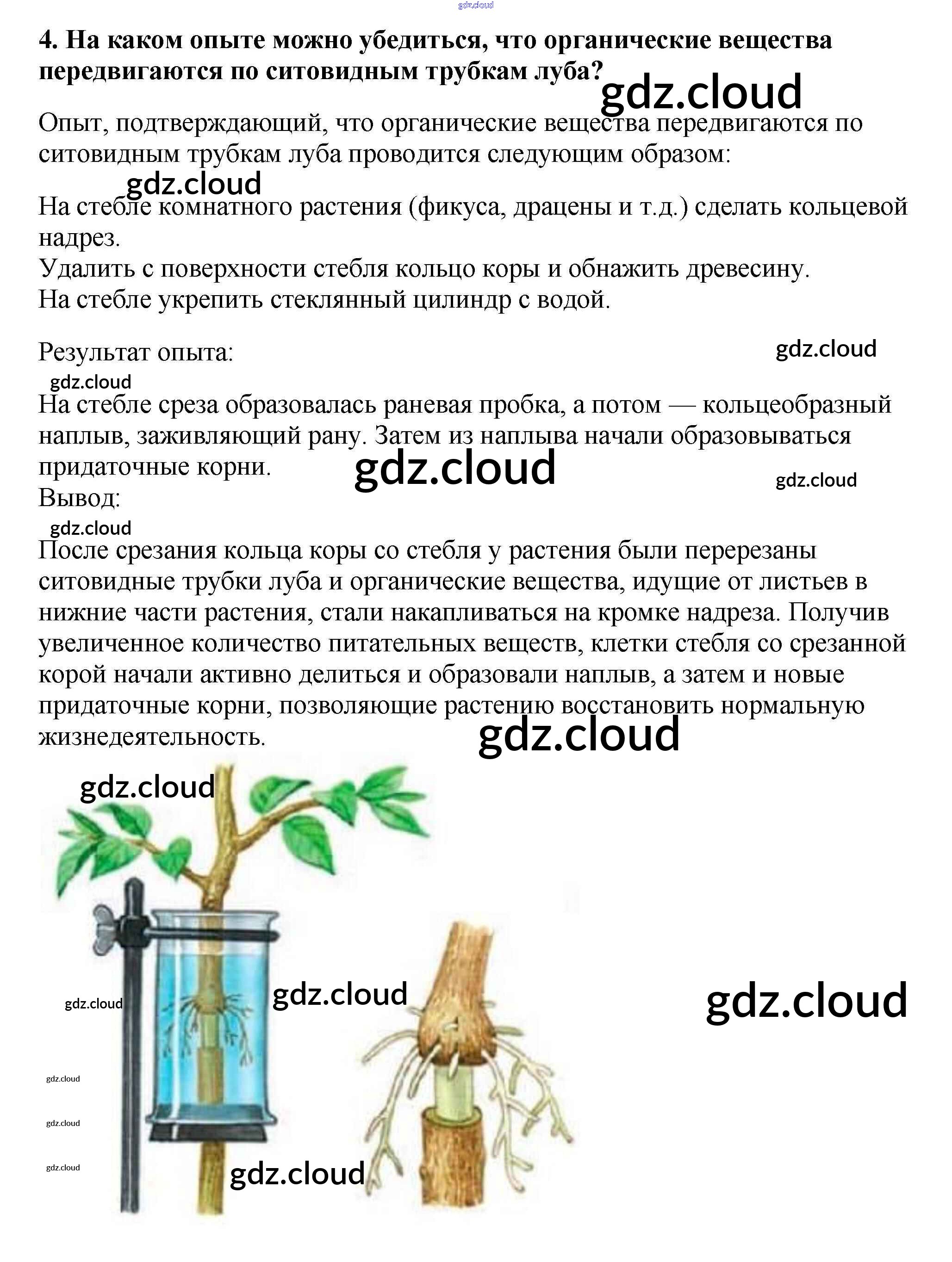 Вопросы в конце параграфа Ответы к §19. Передвижение воды и питательных веществ в растении по Биологии 6 класс Учебник Пасечник Вертикаль Дрофа