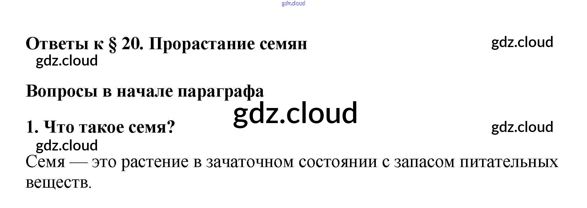 Вопросы в начале параграфа Ответы к §20. Прорастание семян по Биологии 6 класс Учебник Пасечник Вертикаль Дрофа