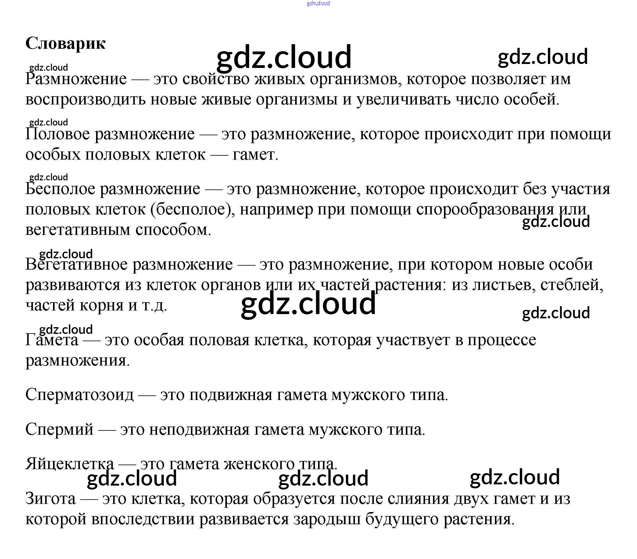 Словарик Ответы к §21. Способы размножения растений по Биологии 6 класс Учебник Пасечник Вертикаль Дрофа