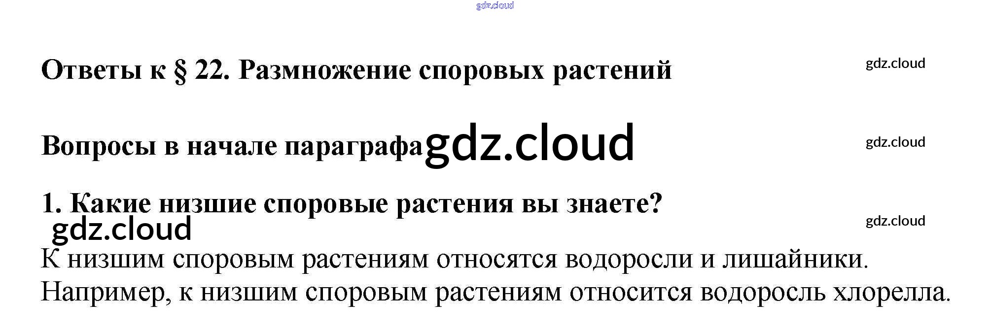 Вопросы в начале параграфа Ответы к §22. Размножение споровых растений по Биологии 6 класс Учебник Пасечник Вертикаль Дрофа
