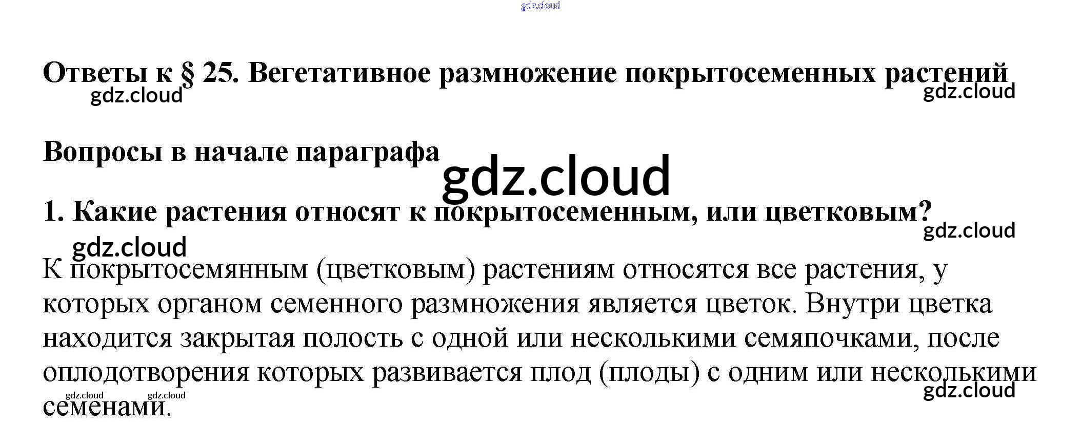 Вопросы в начале параграфа Ответы к §25. Вегетативное размножение покрытосеменных растений по Биологии 6 класс Учебник Пасечник Вертикаль Дрофа