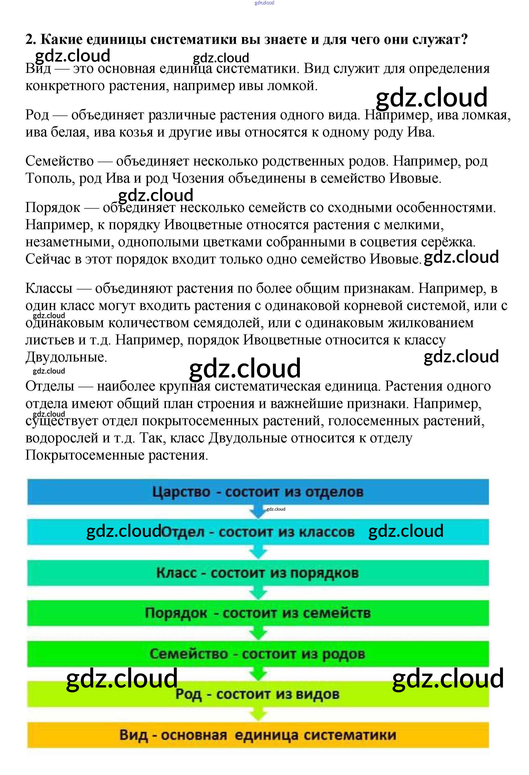 Вопросы в конце параграфа Ответы к §26. Основы систематики растений по Биологии 6 класс Учебник Пасечник Вертикаль Дрофа