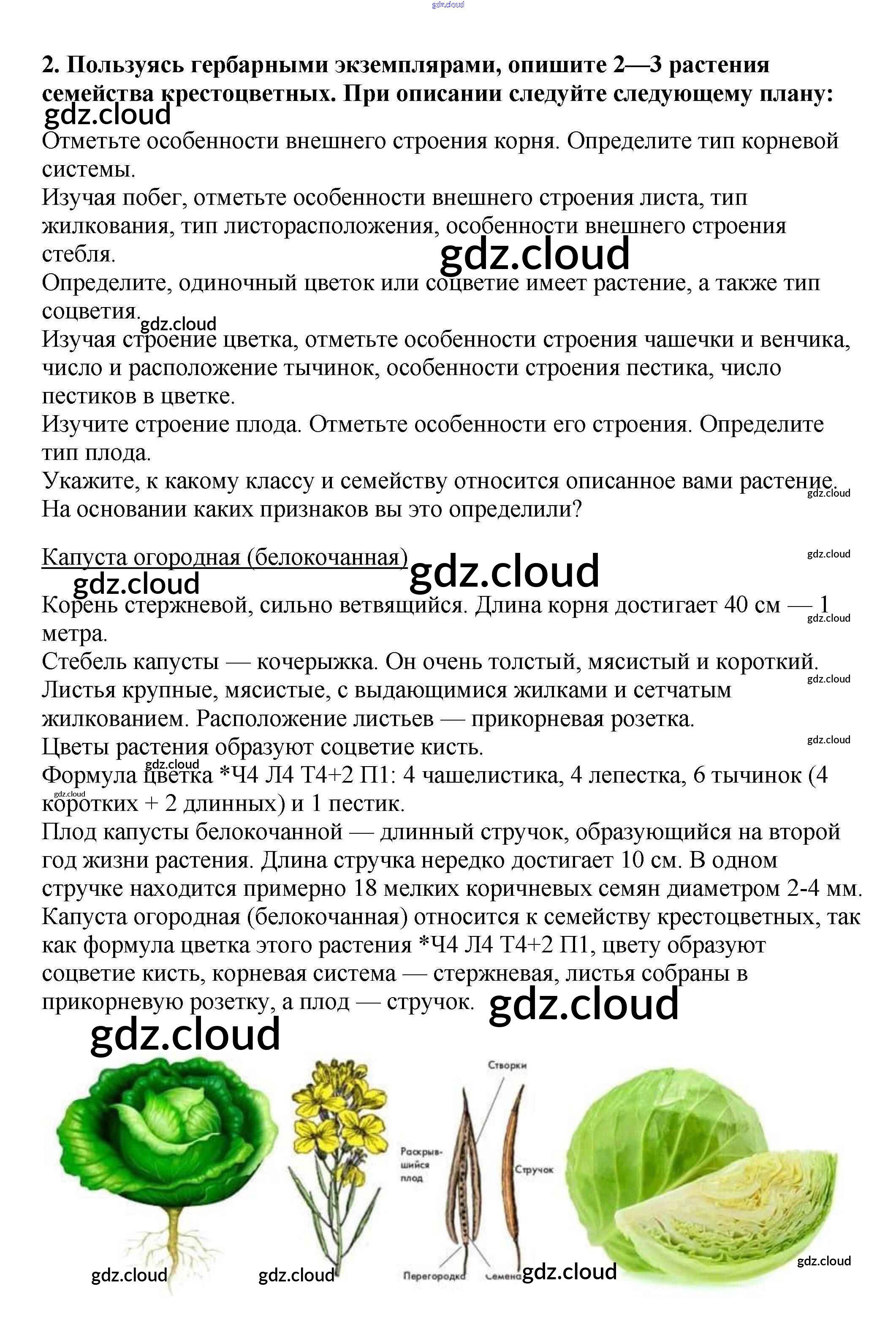Задания Ответы к §27. Класс Двудольные. Семейства Крестоцветные (Капустные) и Розоцветные по Биологии 6 класс Учебник Пасечник Вертикаль Дрофа