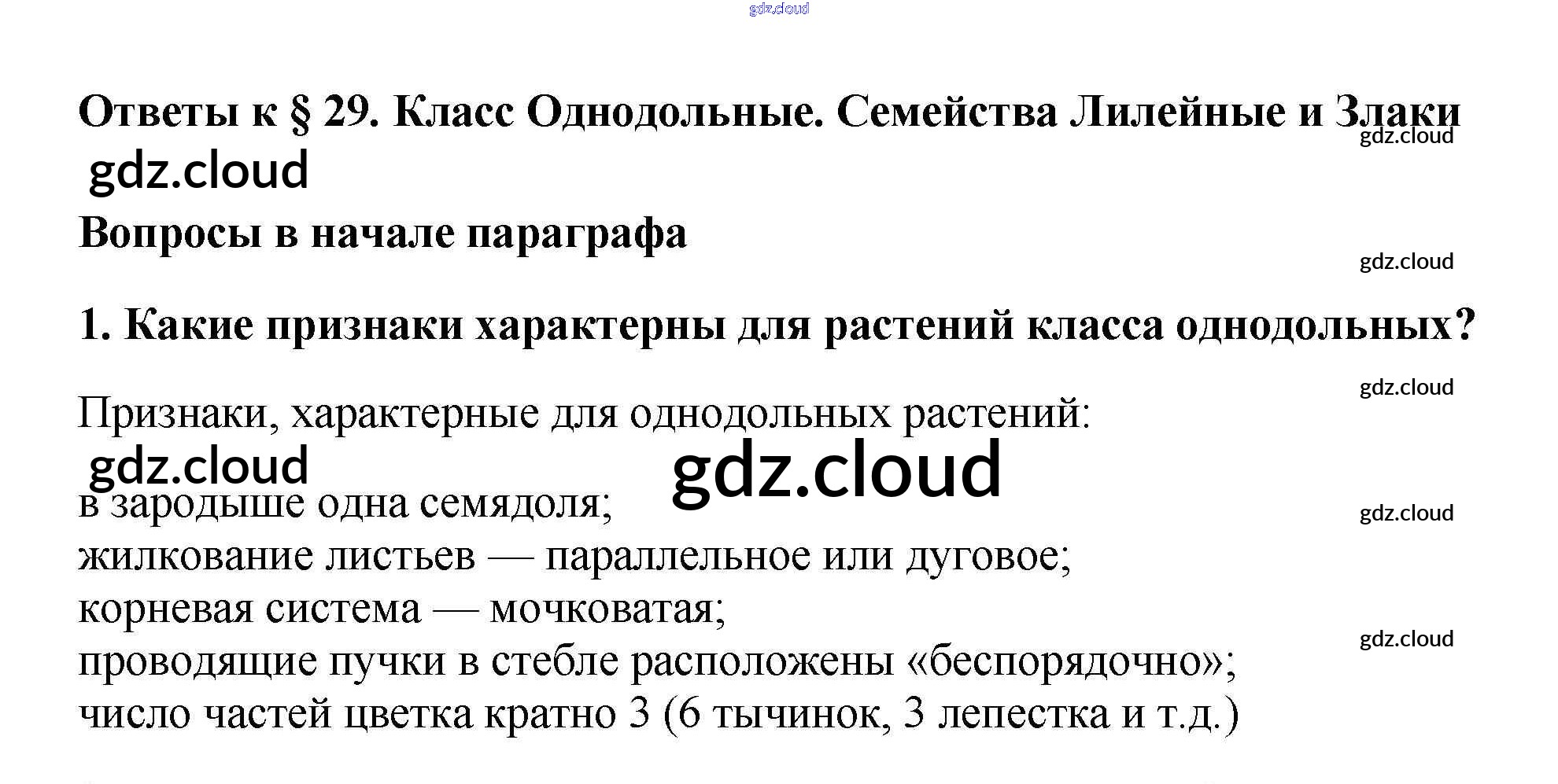 Вопросы в начале параграфа Ответы к §29. Класс Однодольные. Семейства Лилейные и Злаки по Биологии 6 класс Учебник Пасечник Вертикаль Дрофа