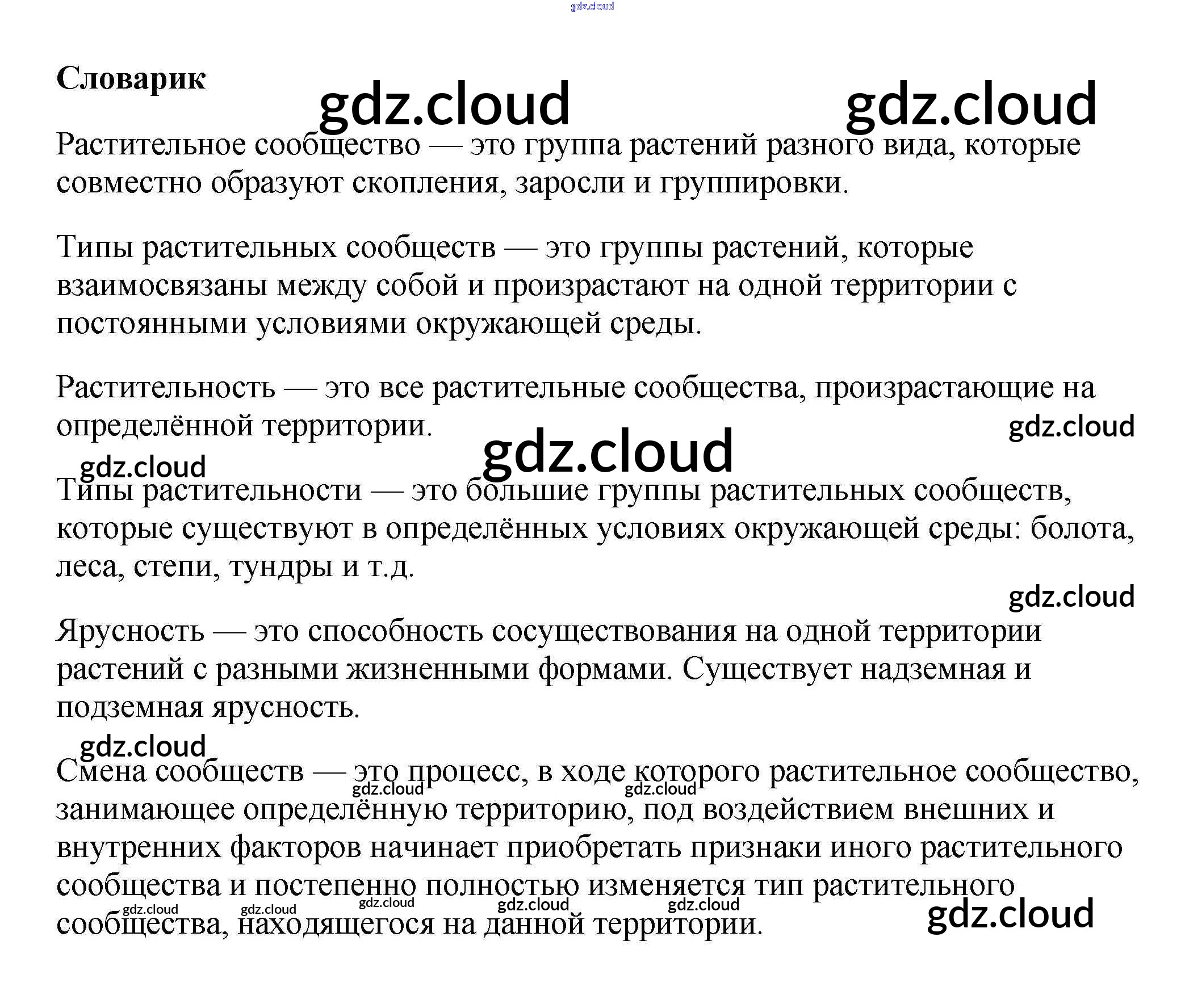 Словарик Ответы к §31. Растительные сообщества по Биологии 6 класс Учебник Пасечник Вертикаль Дрофа