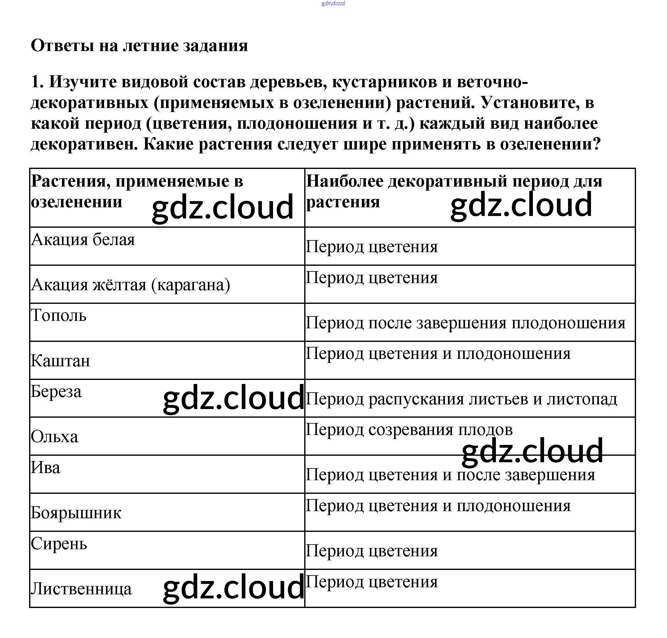 Летние задания по Биологии 6 класс Учебник Пасечник Вертикаль Дрофа