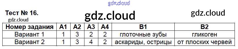 Ответ на задание 16 Контрольно-измерительные материалы (КИМ) Биология за 7 (седьмой) класс Артемьева 2018 ФГОС онлайн и без номера телефона.