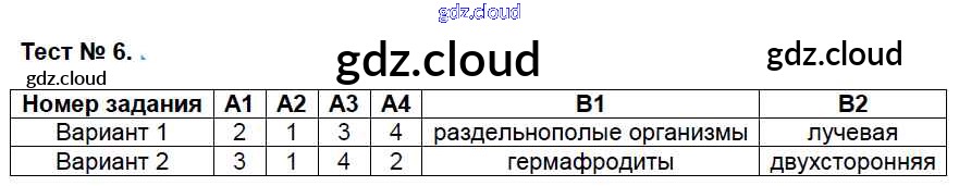 Ответ на задание 6 Контрольно-измерительные материалы (КИМ) Биология за 7 (седьмой) класс Артемьева 2018 ФГОС онлайн и без номера телефона.
