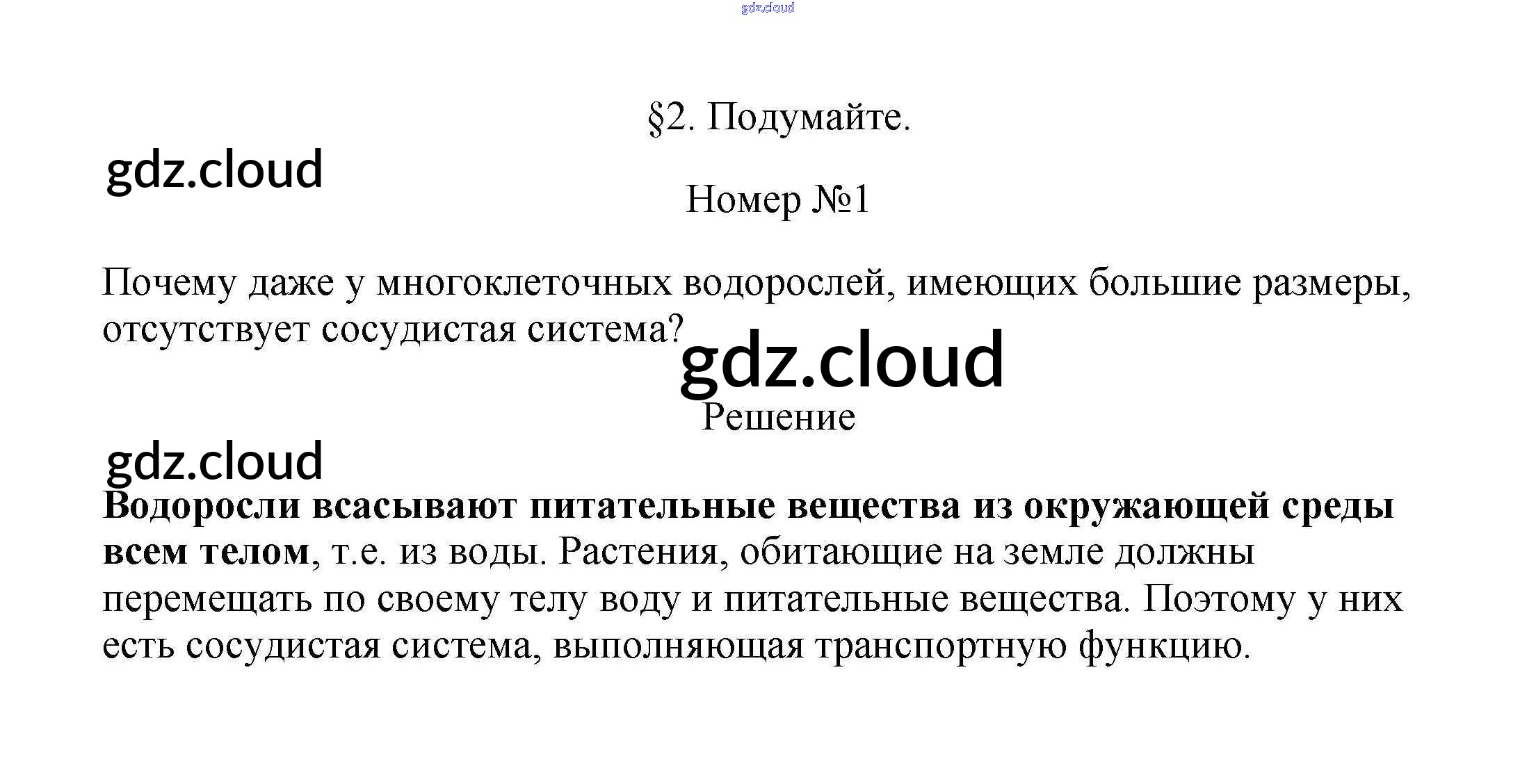 Подумайте Ответы к §2. Группа отделов Водоросли по Биологии 7 класс Учебник Пасечник Линейный курс Дрофа