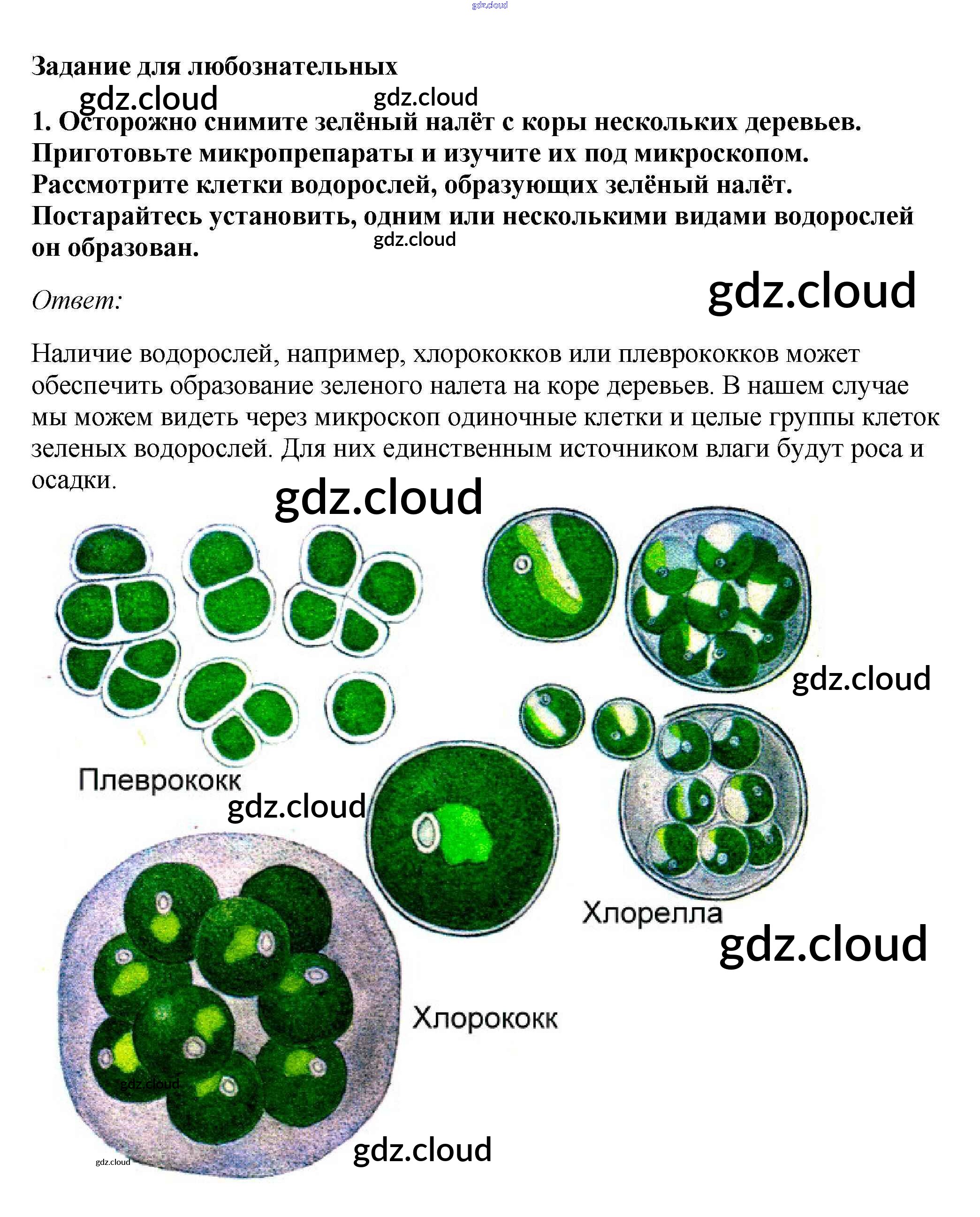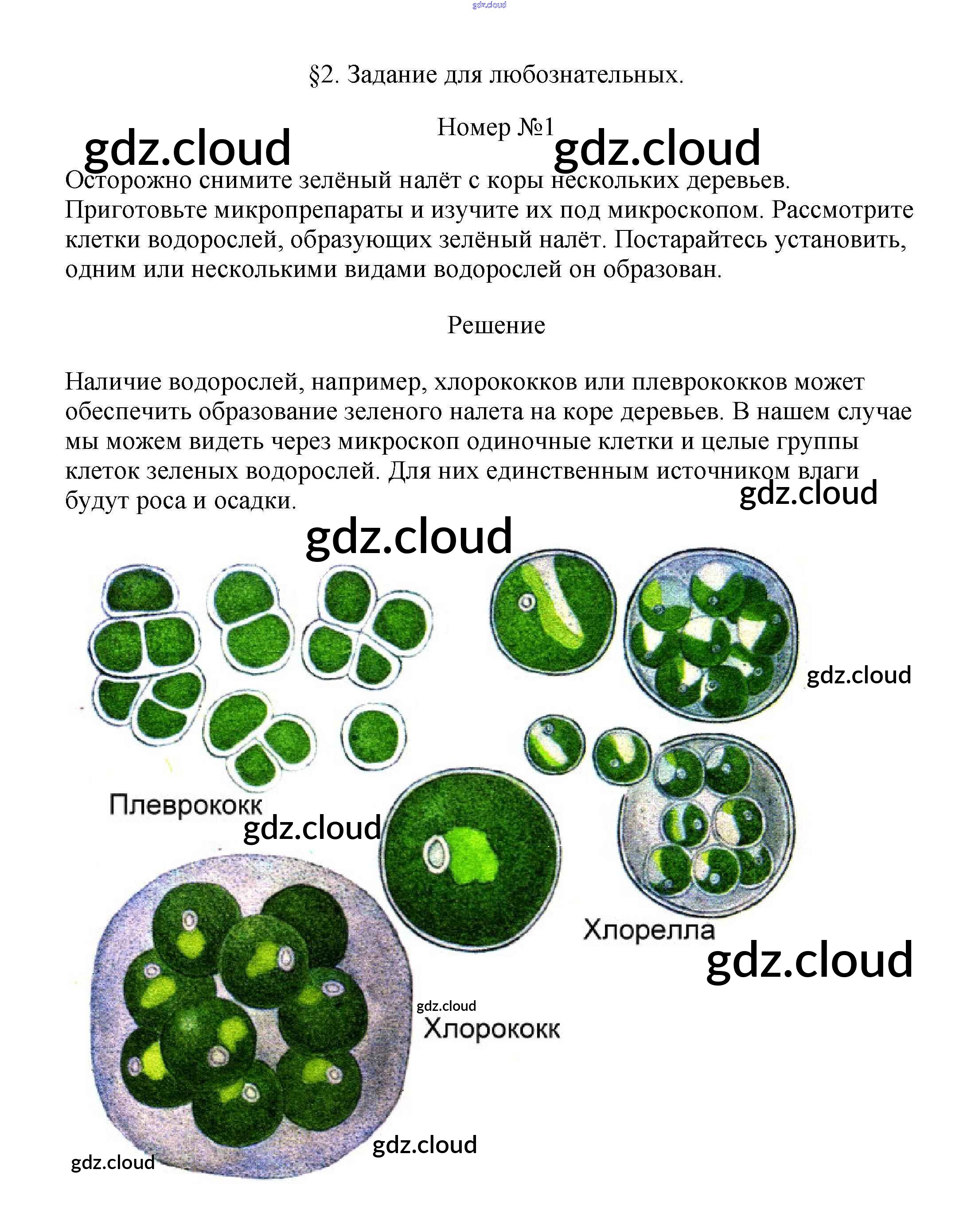 Задание для любознательных Ответы к §2. Группа отделов Водоросли по Биологии 7 класс Учебник Пасечник Линейный курс Дрофа