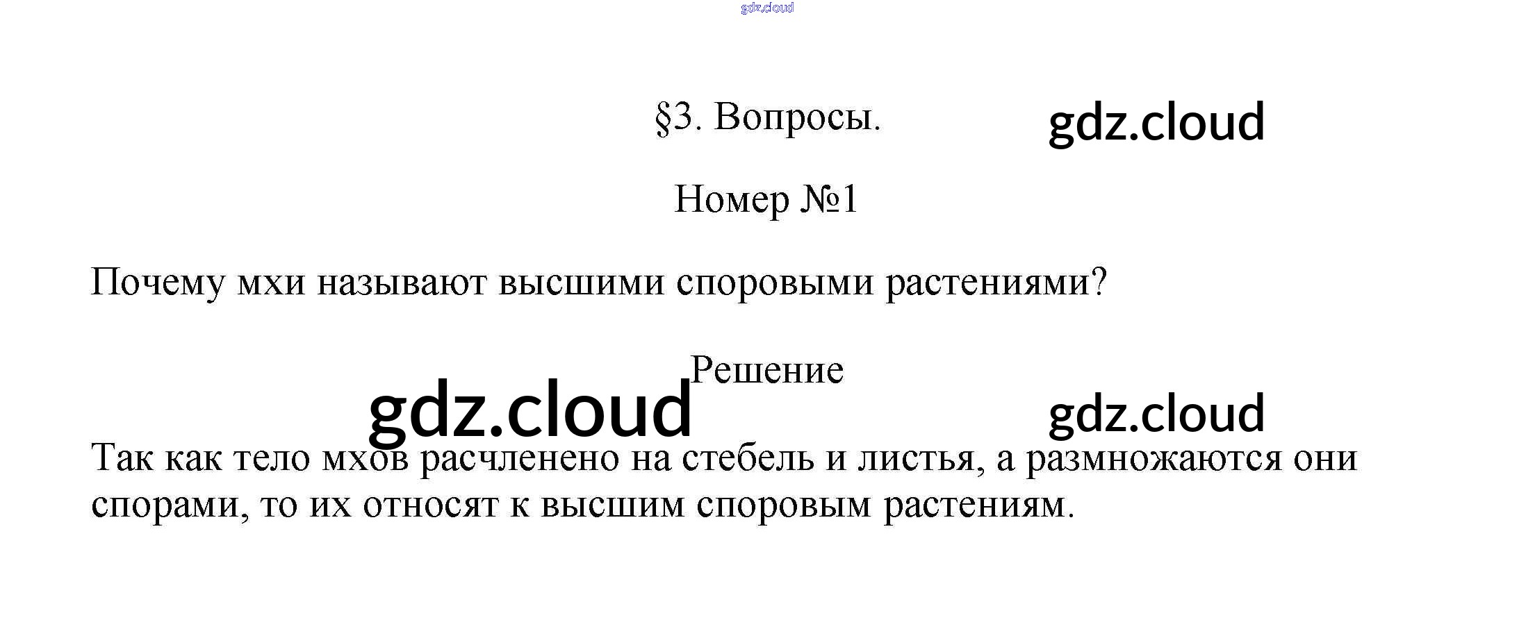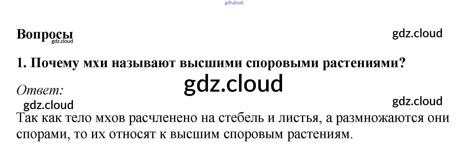 Вопросы Ответы к §3. Отдел моховидные по Биологии 7 класс Учебник Пасечник Линейный курс Дрофа