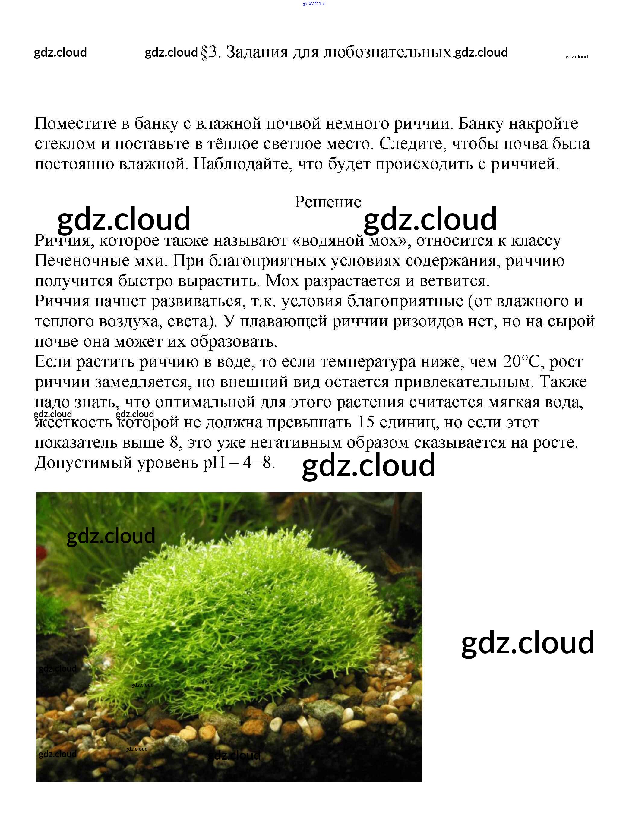Задания для любознательных Ответы к §3. Отдел моховидные по Биологии 7 класс Учебник Пасечник Линейный курс Дрофа
