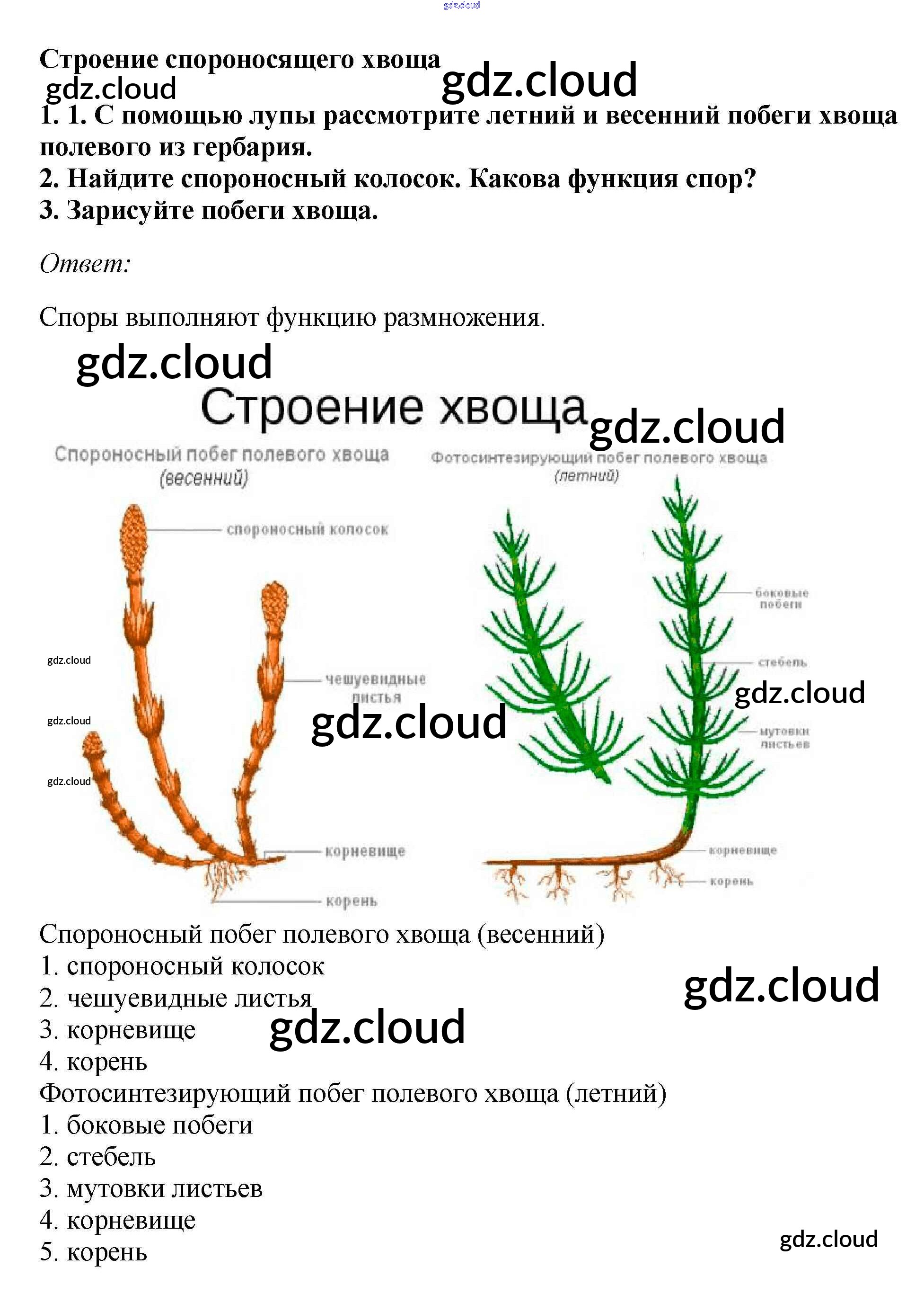 Строение спороносящего хвоща Ответы к §4. Отделы: Плауновидные, Хвощевидные, Папоротниковидные по Биологии 7 класс Учебник Пасечник Линейный курс Дрофа