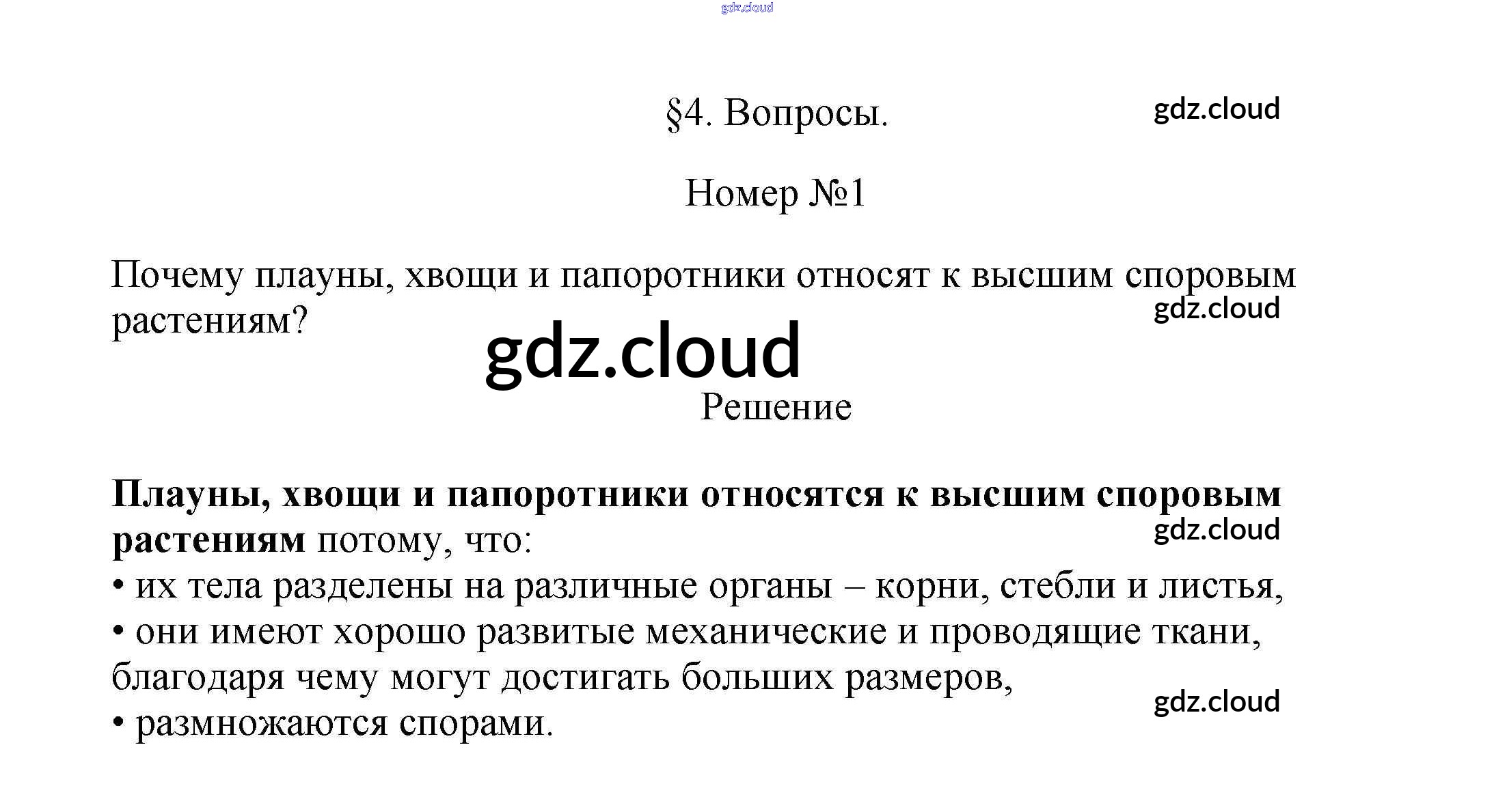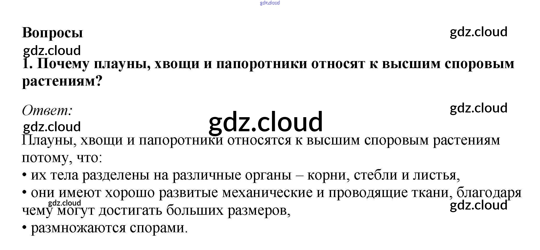Вопросы Ответы к §4. Отделы: Плауновидные, Хвощевидные, Папоротниковидные по Биологии 7 класс Учебник Пасечник Линейный курс Дрофа