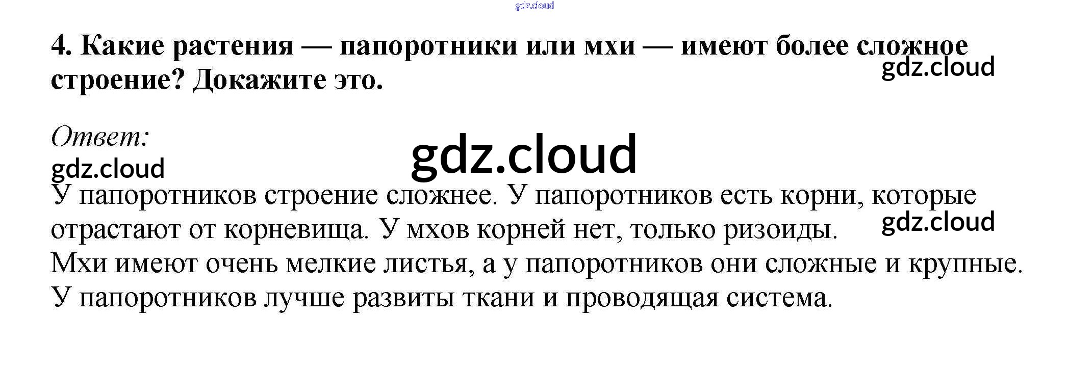 Вопросы Ответы к §4. Отделы: Плауновидные, Хвощевидные, Папоротниковидные по Биологии 7 класс Учебник Пасечник Линейный курс Дрофа
