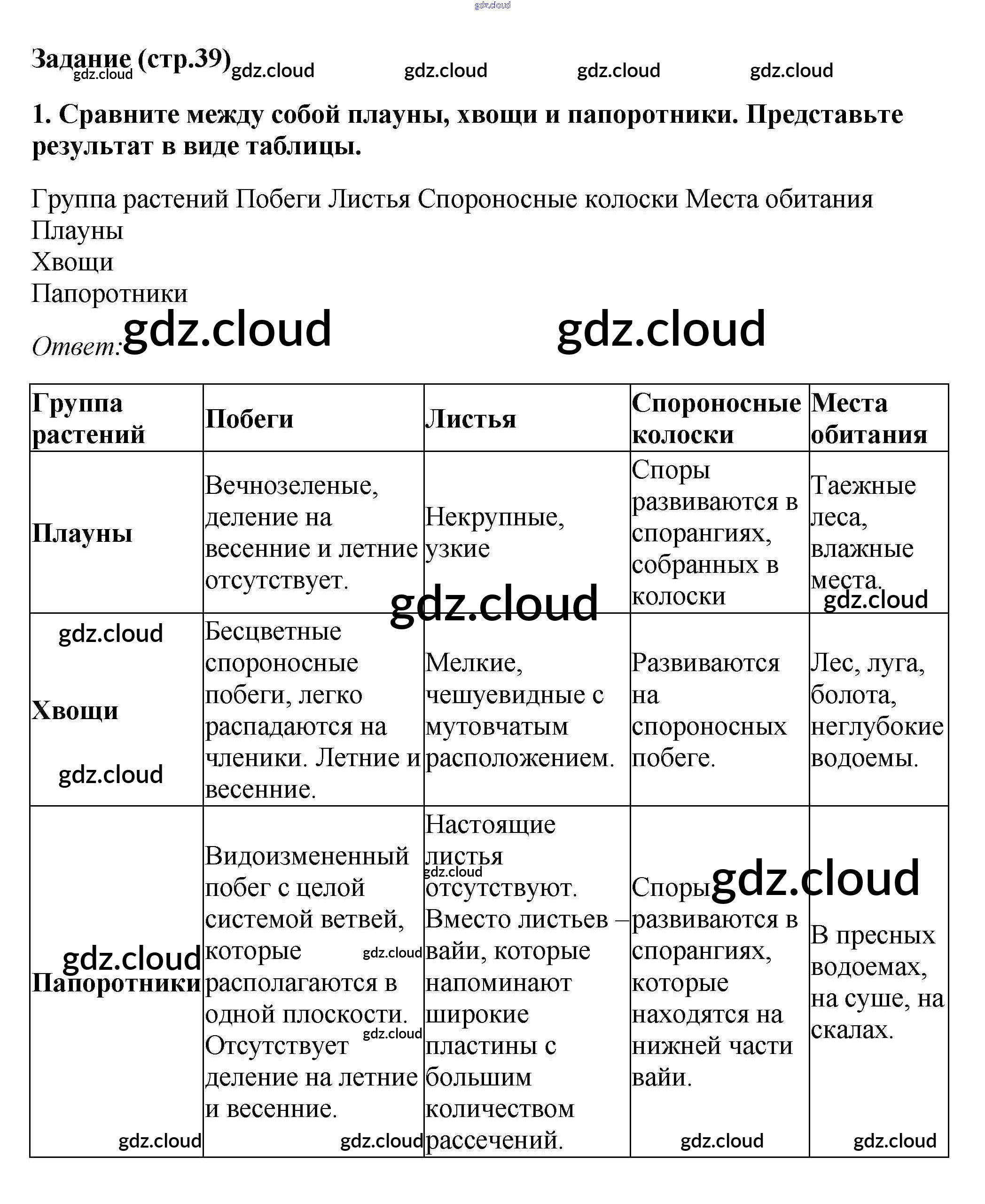 Ответ на задание стр.39 Учебник Биология за 7 (седьмой) класс Пасечник Линейный курс 2020