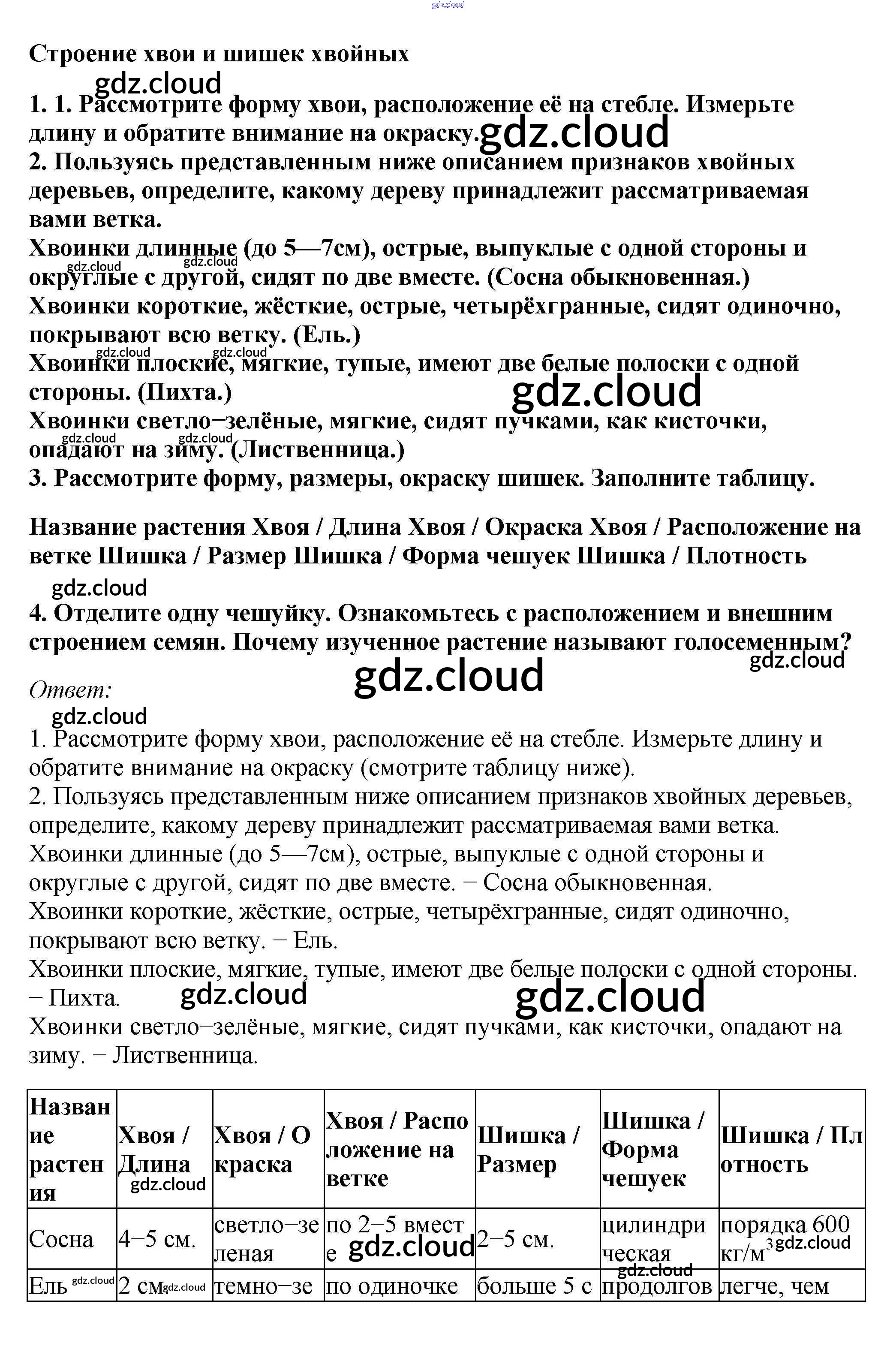 Строение хвои и шишек хвойных Ответы к §5. Отдел Голосеменные по Биологии 7 класс Учебник Пасечник Линейный курс Дрофа