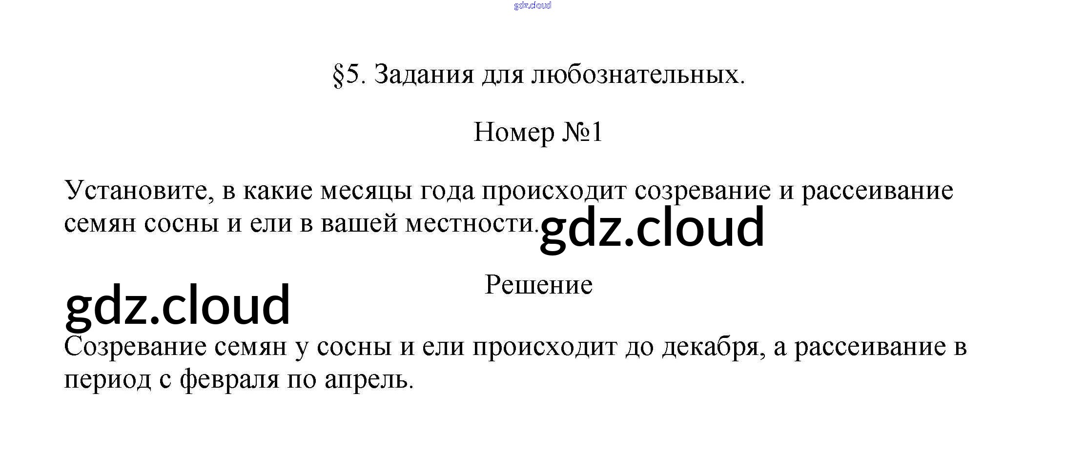 Задания для любознательных Ответы к §5. Отдел Голосеменные по Биологии 7 класс Учебник Пасечник Линейный курс Дрофа
