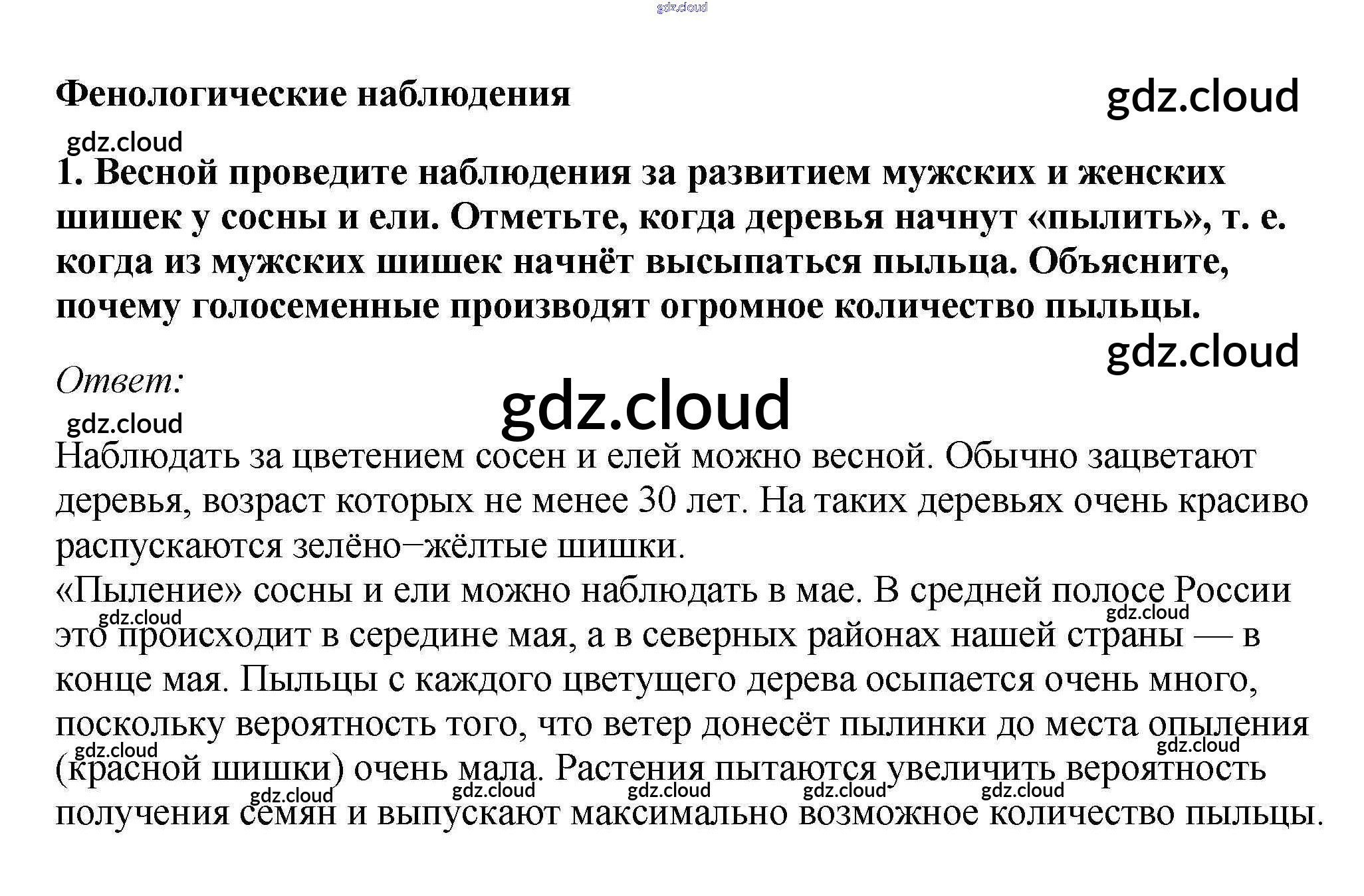 Фенологические наблюдения Ответы к §5. Отдел Голосеменные по Биологии 7 класс Учебник Пасечник Линейный курс Дрофа